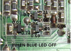 PIN7: blue led off: 0.21V and when blue led is on: 0.24V