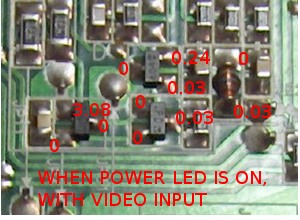 Next, with the power LED on and active (blue or green, whichever this monitor uses) and a video signal being fed to the monitor, measure the same 11 points.
