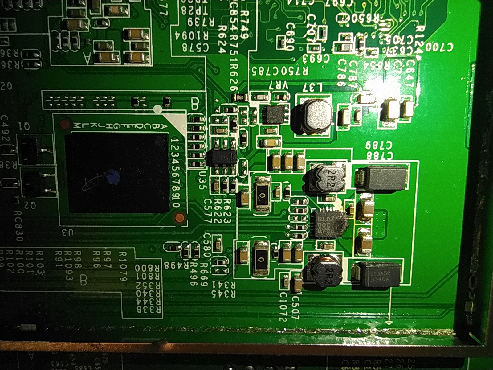 There is a 2nd working small IC marked "3001 0gt1" that converts 3.3v to 1.8v, both power separate CPu's on the board.