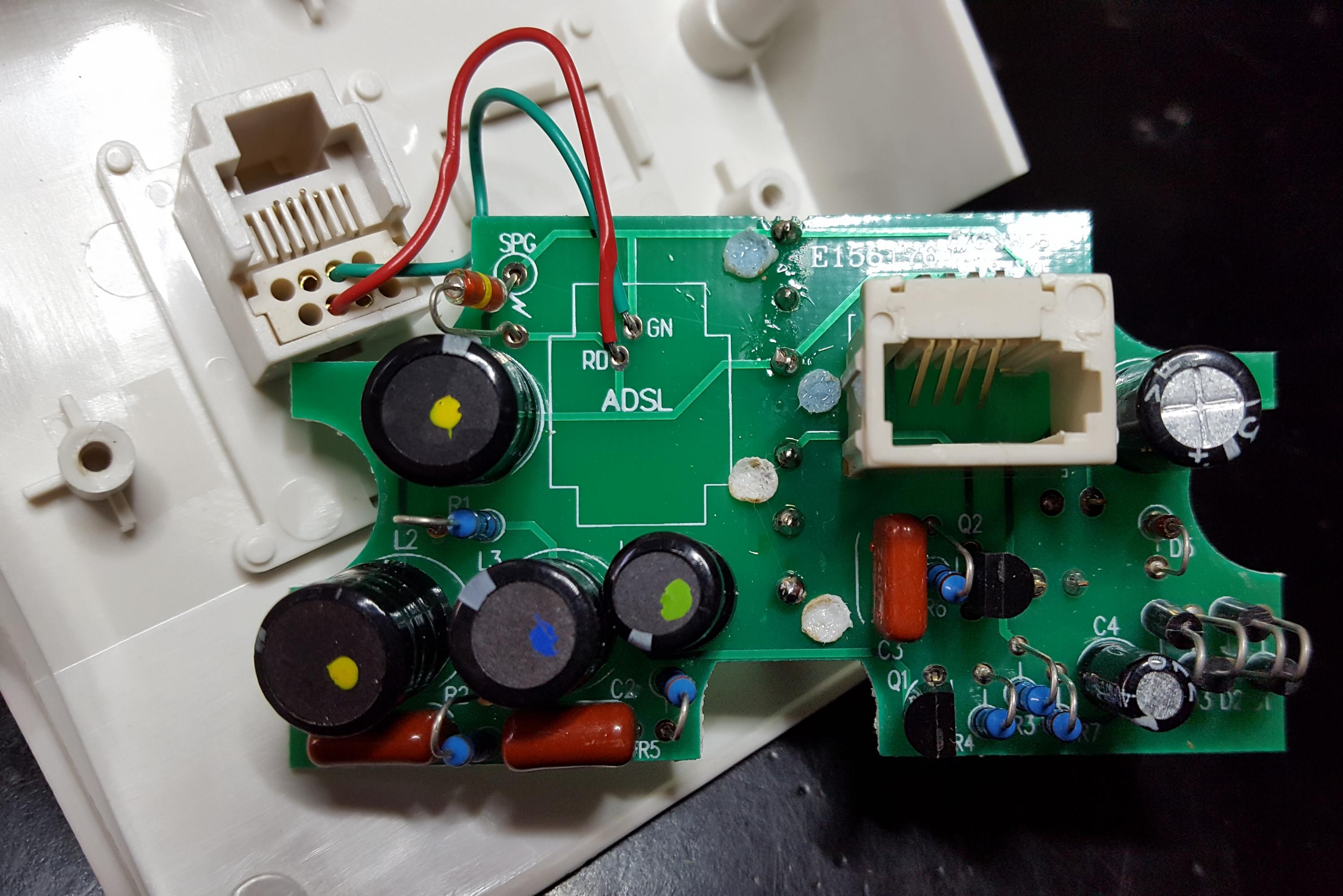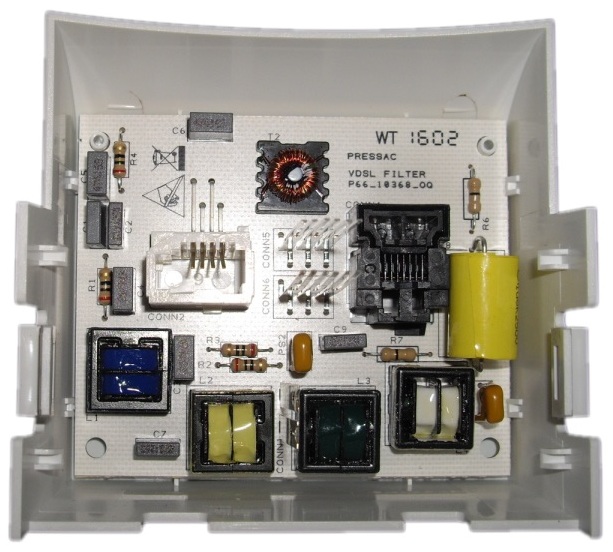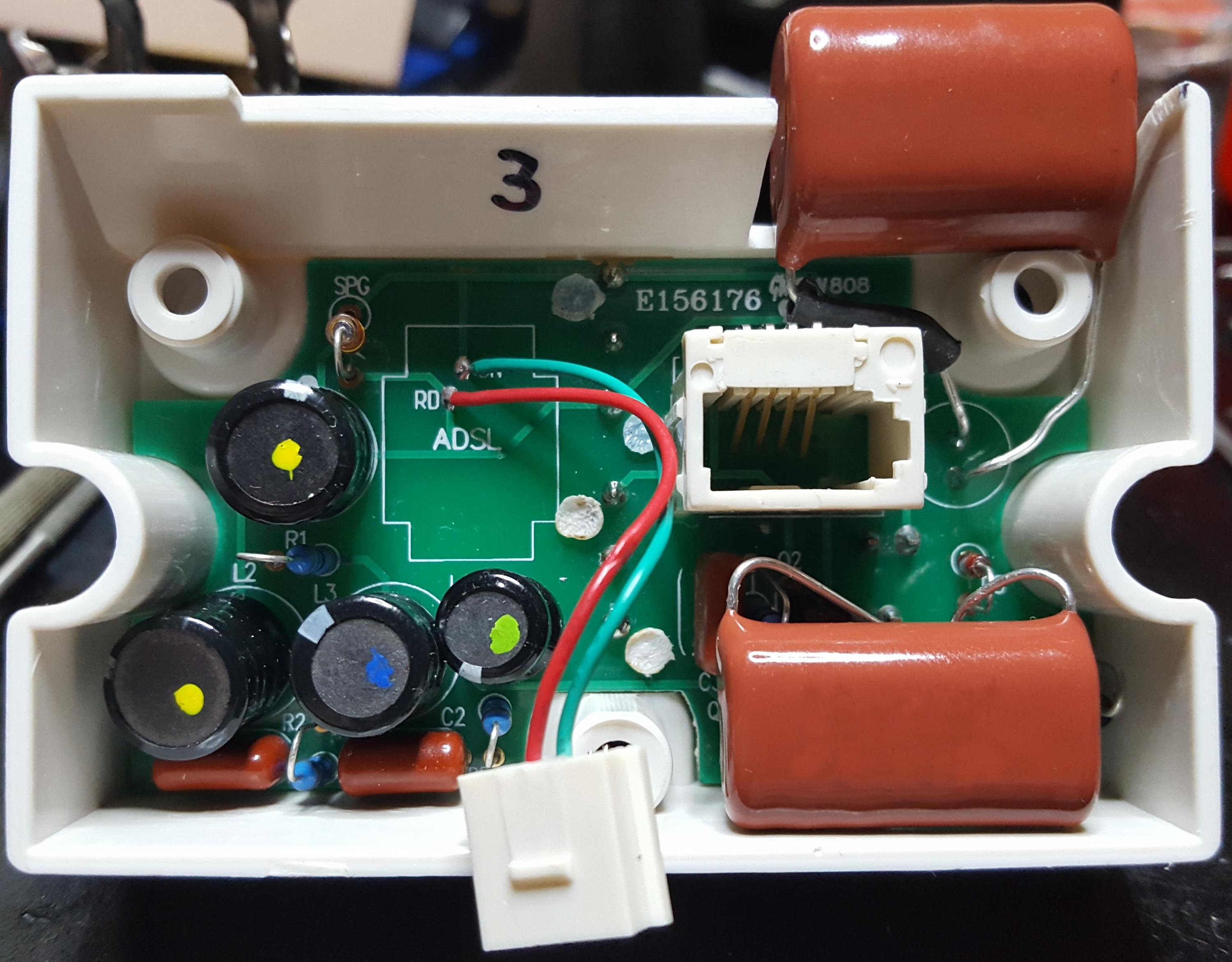 I would like to replace the two capacitors on it that I suspect keep failing - the real issue being the frequency separation and filtering performance (ADSL connection speed) of the "XTE-2005" increasingly ebbs away long before you replace it when it finally dies (sudden audible noise on voice telephone calls).