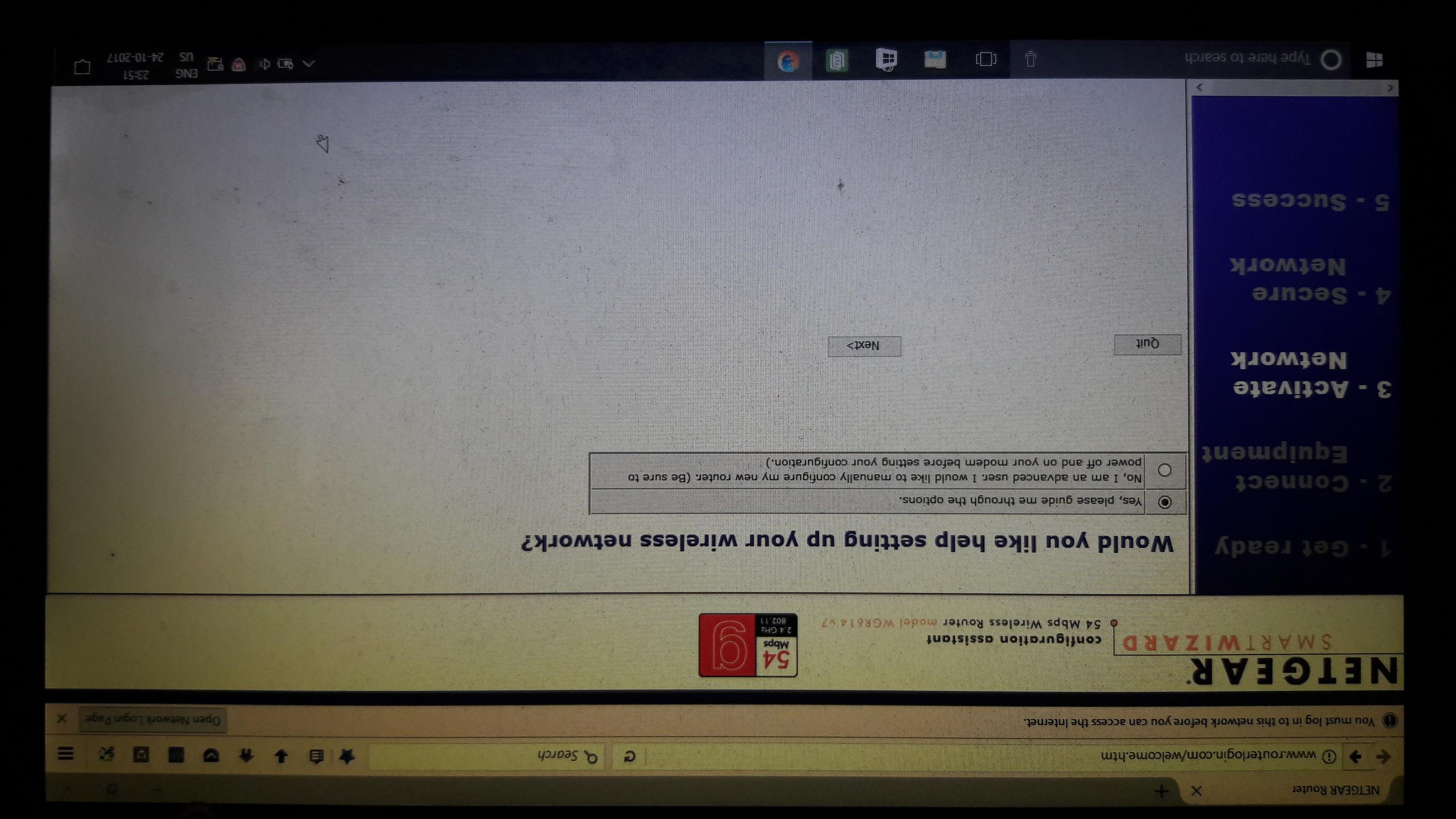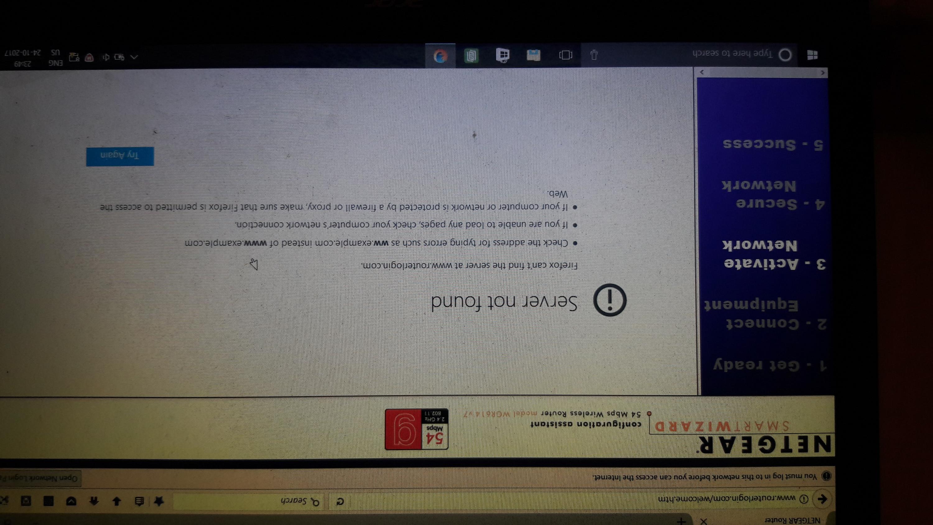 “would you like help setting up your wireless network” by clicking next. I then am greeted with the next page that says “server not found”. “Firefox Can't find the server at www.routerlogin.com”.