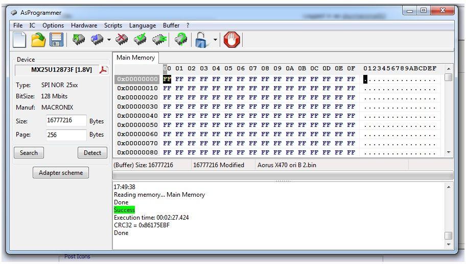 I got a gigabyte Mainboard here, thats not powering on, i inspected the whole board for any physical damage but didn´t find anything. so i took my ch341 an read both of the bios chips these are both MX25U12873F.