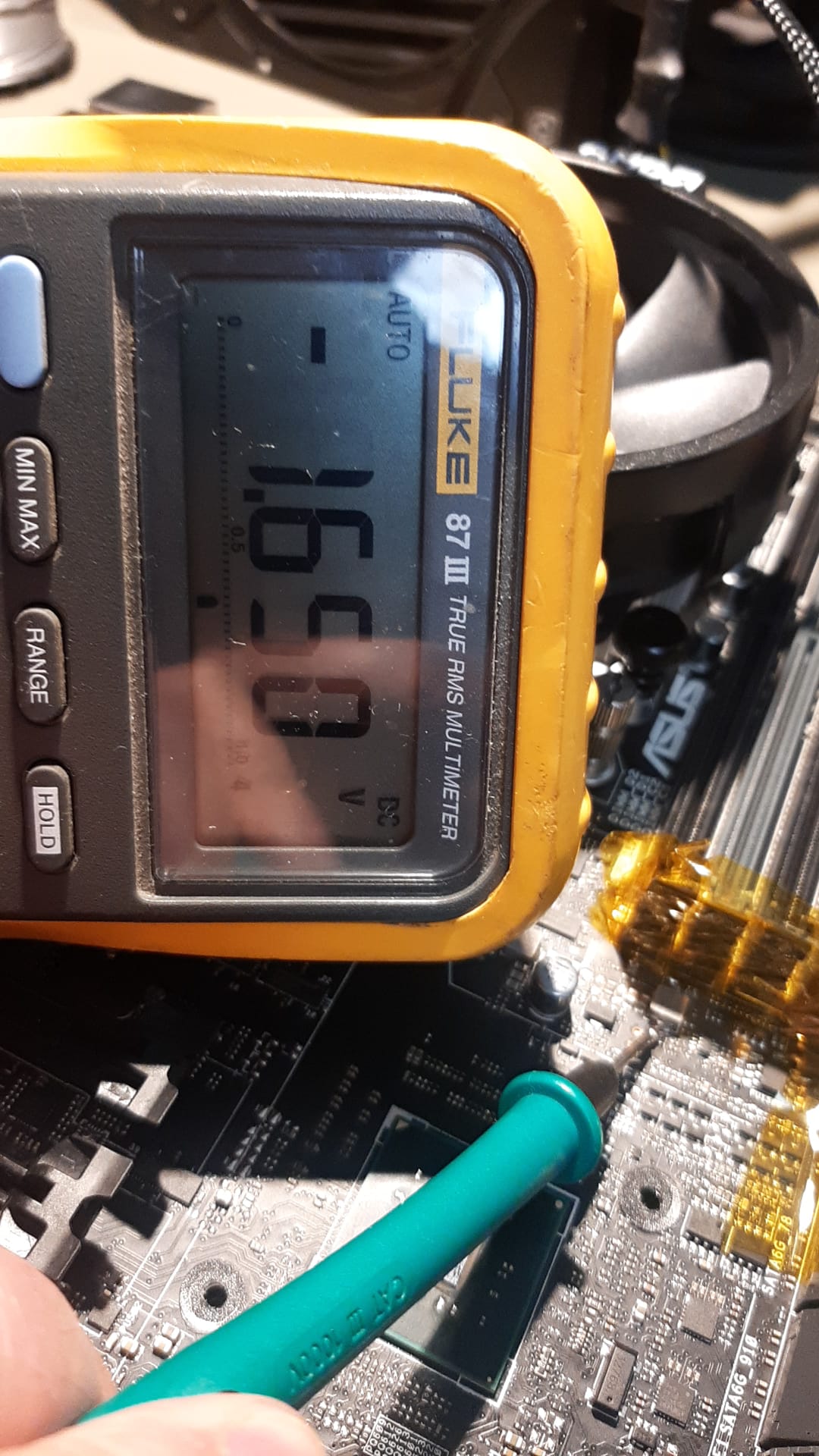I think he is right .... but I already try and the board, this time, shut off immediately (voltages here is 1.05 not 1.5 .... he probably got confused).