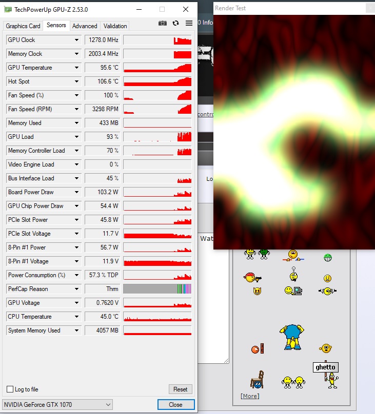 Also tested the back of the card with an infrared thermometer and it reads 85ºC when GPU-Z says 95ºC, so T reads*are*fine....