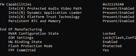 I have an Asus s5506ma that was bricked after a Windows update supposedly when it was updating bios. It seems to be a meteorlake Intel CPU core ultra, I cannot find too much info regarding this hardware, anyone have info about if it contains Intel ME engine and if there is any tool for disassemble spi image like we do with all CSME or TXE versions using the appropriate Intel ME tool? The problem is original bios file Asus provides, has bios guard protection, I downloaded the latest update for Ami_pfat_extractor from plomatov (previous versions of AMI bios guard extractor doesn't work),with that...