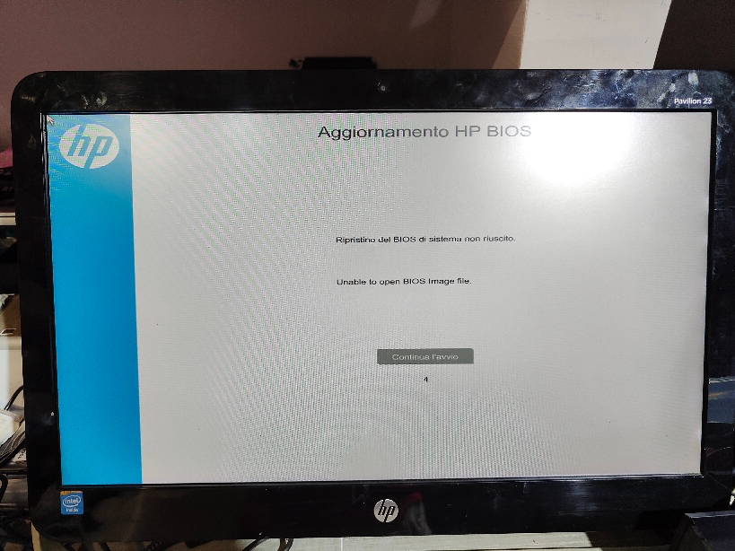 i hear 8 long beeps then usb drive flashing, then hdd light blinks rapidly e i got screen on HP "unable to open bios image file" then goes off