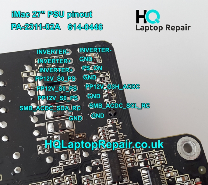 Have this 27" iMac, that suddently after 2/3 yearsin storage wont start. when i connect power i was hearing some electric sparks sound from back of PSU. i wigle whole mac and it start with chore. so i remove PSU to check, but there is only AC input and output to board and see no bad connections. i resoldered big chips but nothing changed.