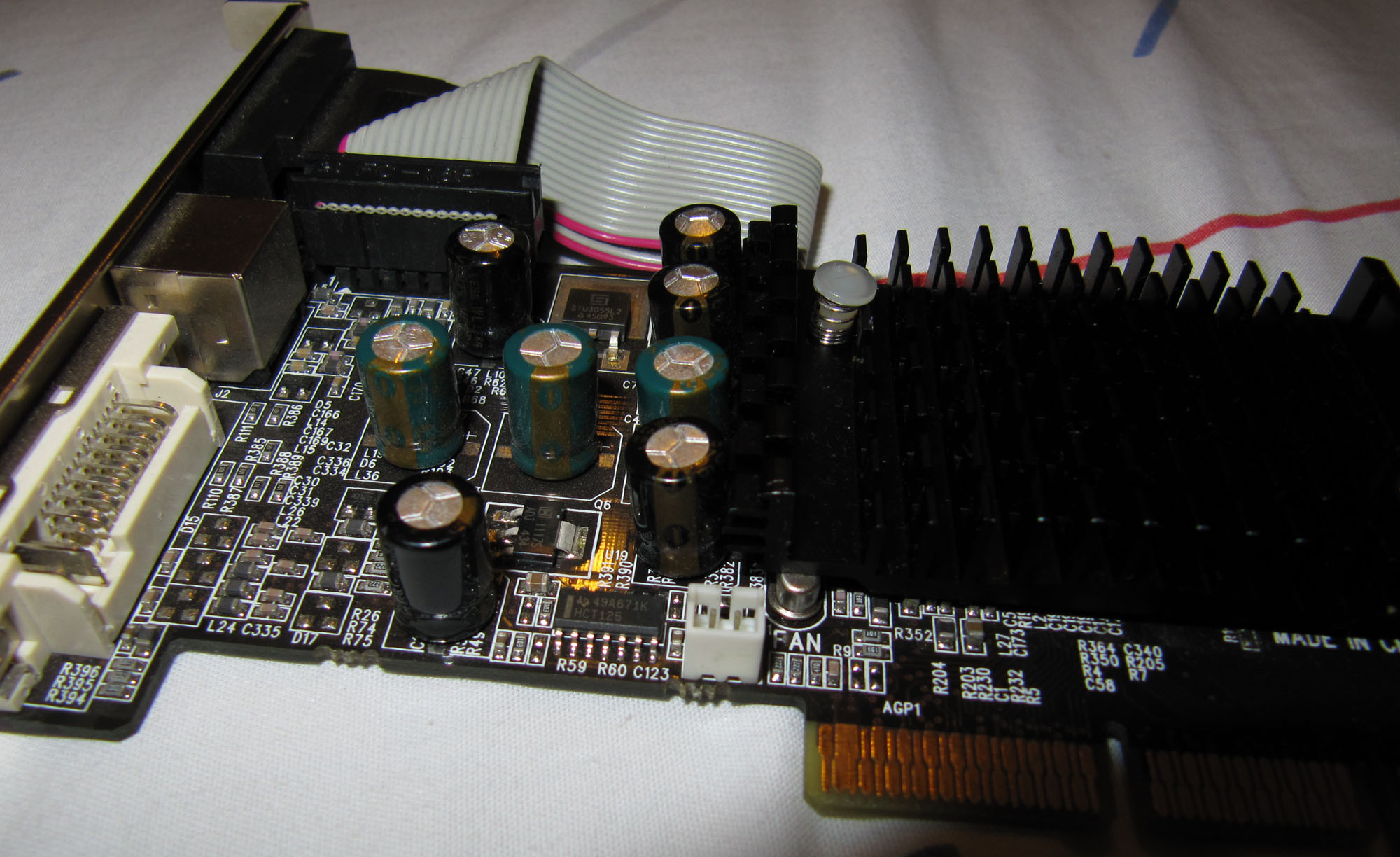 The card boots, but there are many little colour squares on the screen. Is it due to bad caps?