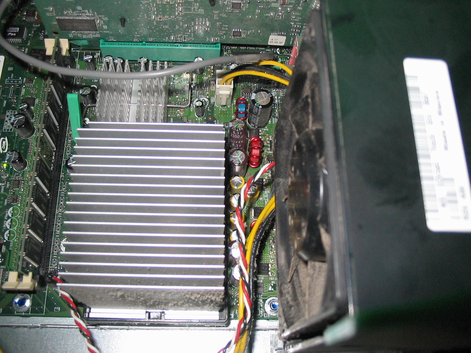 The VRM caps need to be replaced as well. Two are bulging, and one of these has blown the bottom out and spewed brown stuff all over the board. Also, this computer still runs prefectly.