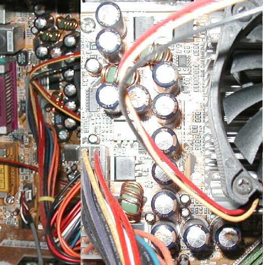 I don't know the motherboard make or model, but there was a sticker 'Pentium 4' on it, so I assume it's a fairly modern one. Are the caps known bad caps, or is the failure just due to the machine being on 24/7 (and the PSU fan dying)?