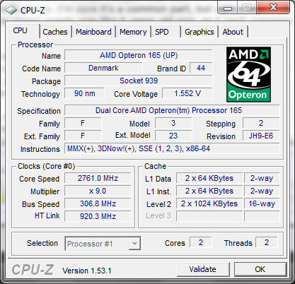 Separately I was also given a Tyan workstation board with an Opteron 165 that apparently liked to "desolder" it's Nvidia chipset from the board. I managed to use a torch on the chipset heatsink twice to "reflow" the chipset back onto the board. The third time I had to repeat this process I heard a loud *ping!* and she was dead. It was a nice board, but it was always cranky. However from that loss I now had a loose socket 939 Opteron 165. Unfortunately it's also the lowest of the low of that line, crippled by a really low multiplier. You'd have to find a board that tolerates a really high bus speed to overclock it. I doubted I'd chance on one of those enthusiast boards. The only other 939 board I had was this generic looking mATX board in the corner that doesn't like long PATA cables. Might as well try it out right? It'll at least be doing something other than the chip decorating my desk. I didn't expect much...