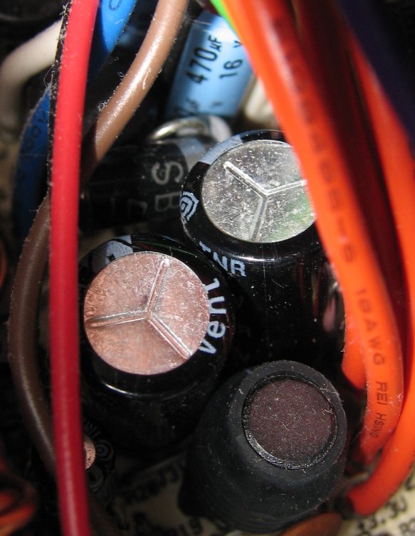 The board has mainly Rubycon caps on it; a good manufacturer. None of the caps are bulged or spilling in any way. However, when turning it on, I often hear a 'hiss' from the area of the PSU, which disappears a few seconds later.