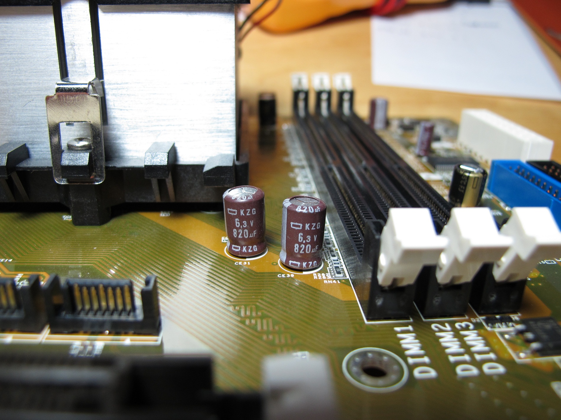 I tried to replace some of the swollen one's and still no-post! Green light is on, fan will turn on, tried to boot with a new PSU!!