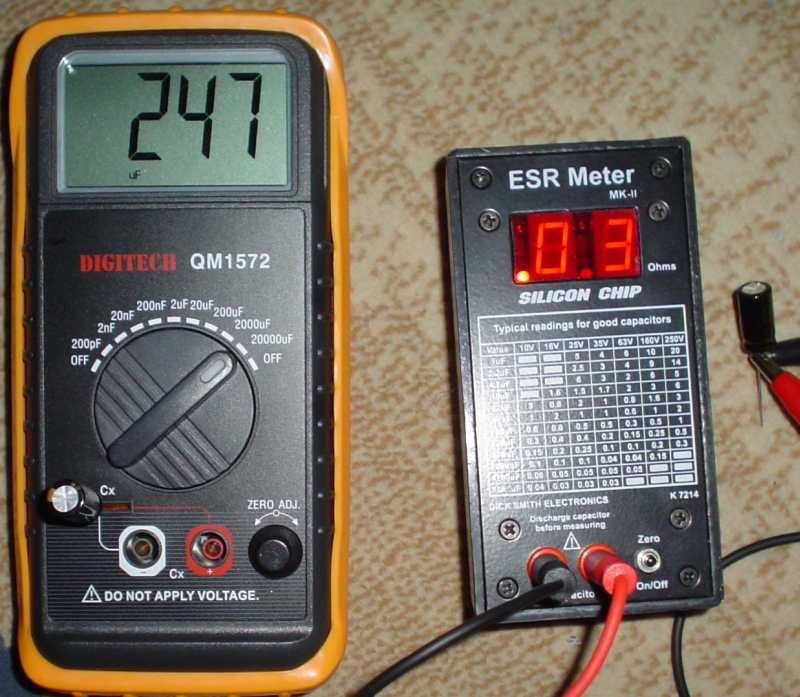 Note: 0. added for clarity ESR, also on last pic of cap meter at 0 2470 = 2,470 uF