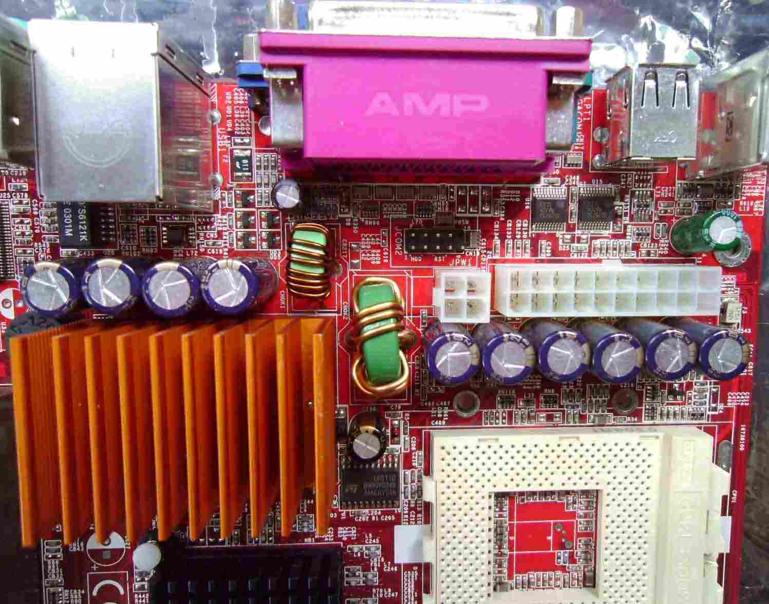 Rubycon MBZ in the VRM, with heatsink on MOSFETs