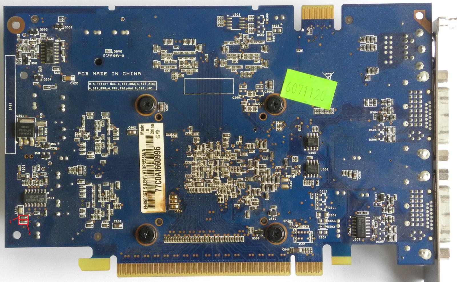 I have an ASUS EN8600GT videocard. Two components are missing from the card. I marked with red on the attached picure.