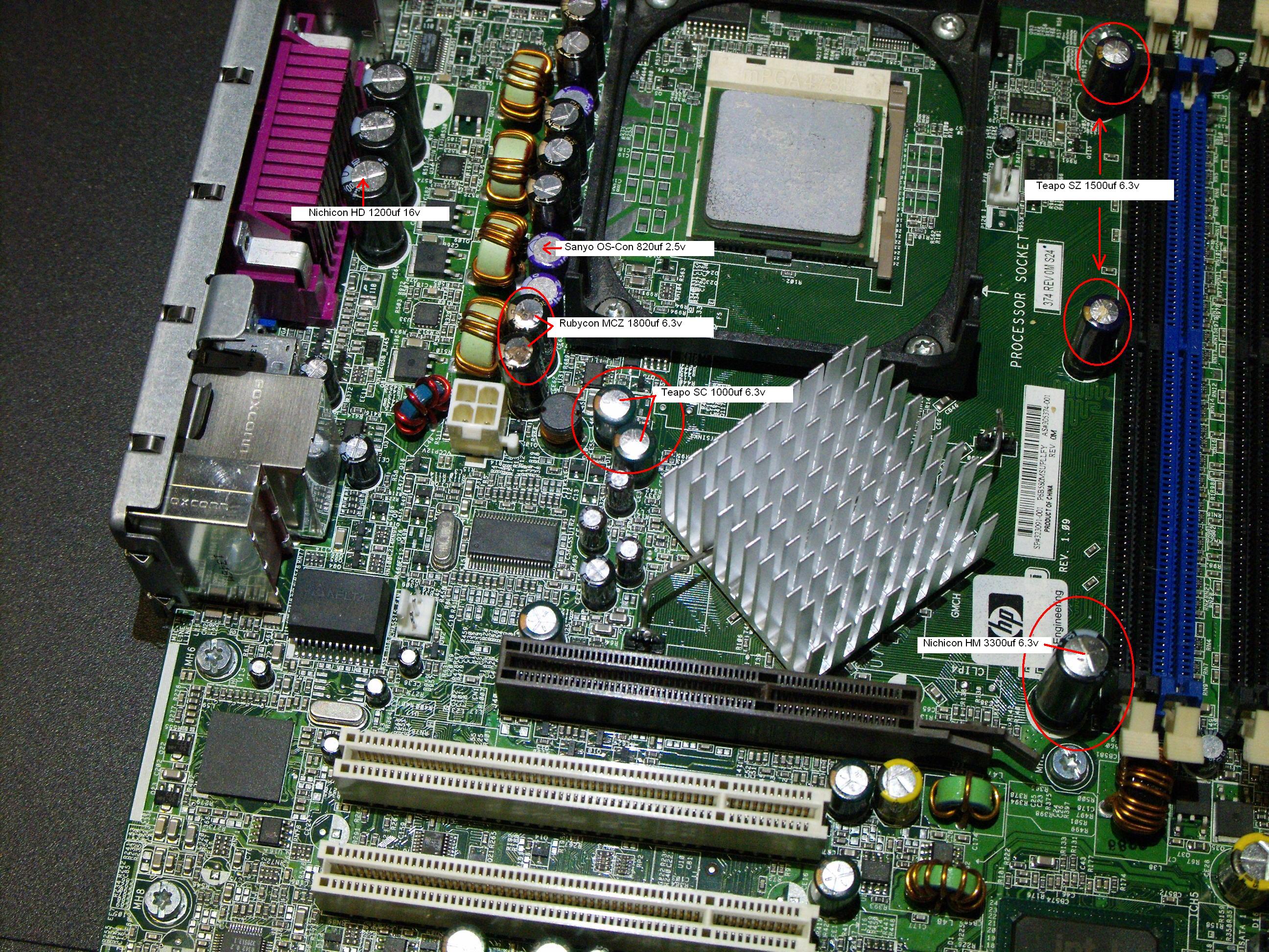 Typical HP, a few bad apples spoils the bunch. Going so well with Nichicon, Panasonic and Sanyo/Fujitsu, then they throw in a few Teapo caps (do I see OST as well in there?) for good measure in a small form factor design known to have poor airflow.