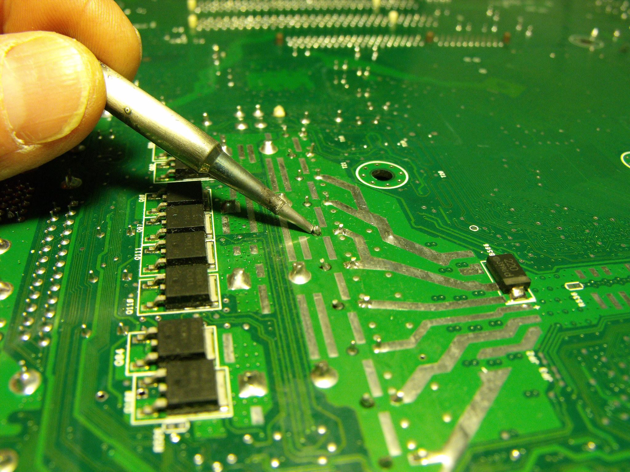 With my 75W temp-regulated station, I had no problem working those caps out, though. 350C was enough to quickly melt the solder.