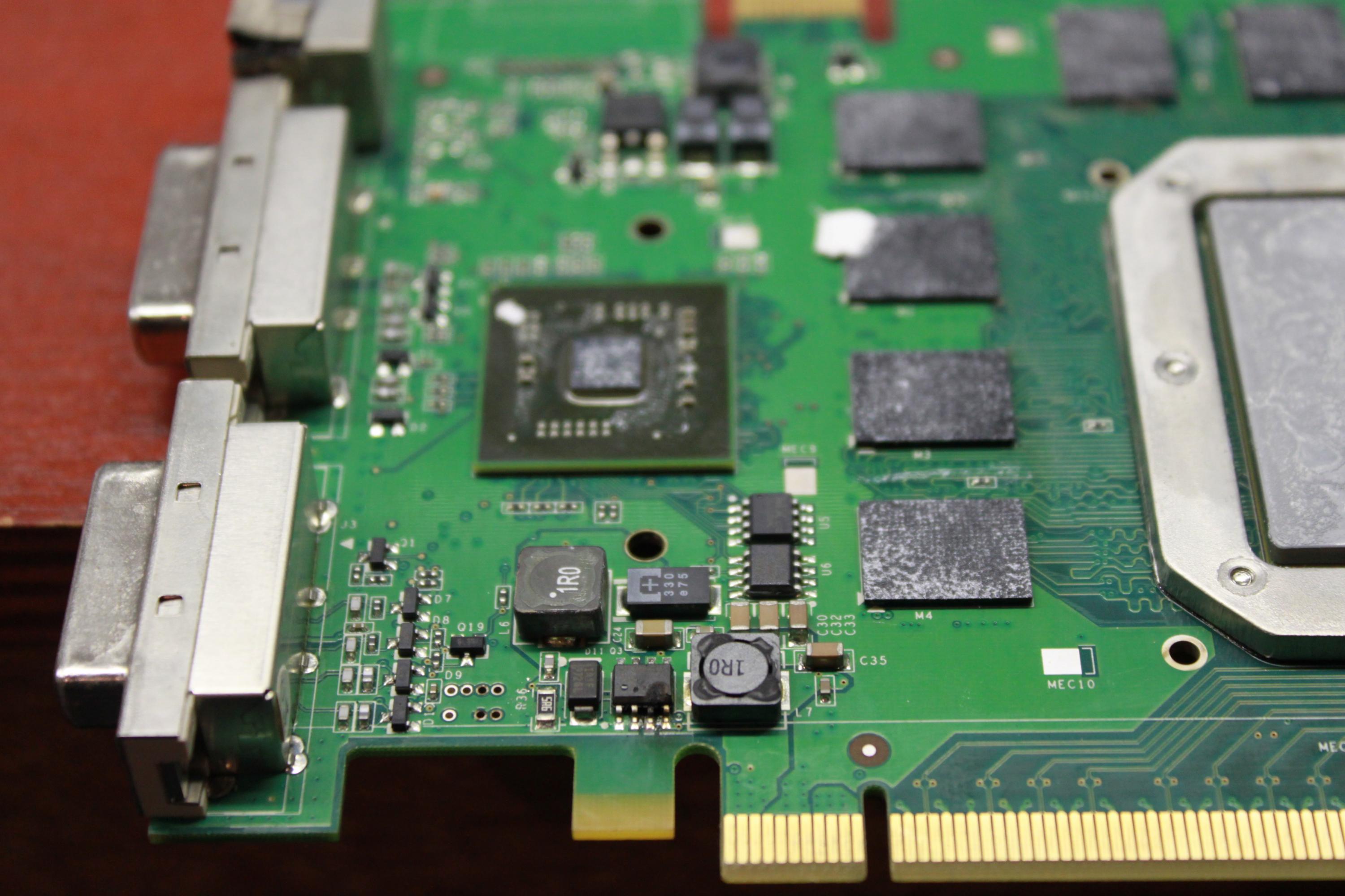 I forgot to connect the power cable when installing my GeForce 8800 gts in my new system. I saw a small puff of smoke coming out of the computer. I discovered a small chip to be burned. Do you guys recognise this chip, i cant find any information on it? I contacted the XFX GeForce helpdesk but they were not willing to help me out, my warranty period was over... I hope to find this little chip and order it. I have a skilled friend who can mount it for me luckily