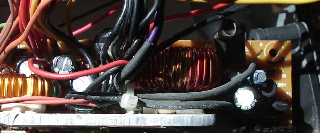 The first cap I saw was 1500uf 16v so I decided to substitute in a 2200uf 16v (???)(red oval).