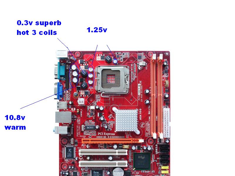 PCCHIPS P17G, was working good just freeze up sometimes. Reccaped almost the whole board, w/good caps, problem is wont post, coils shows 0.3v and run extra-hot, but output solid caps shows 1.25v (right for pentium D), and input caps 10.85v. I dont know if it is one or all mosfet shorted, or could coils be bad? why i still get Vcore on output little caps?? i dont get it