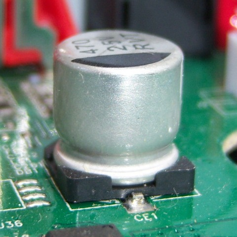 Image shows why I registered. It's one of several SMD caps in a Linux mips-based STB made by the defunct Portugese Opensat, branded AZBox, model ME, that is less than reliable in normal operation. It has several random bad behaviors that don't seem related to each other. Often the only way to clear the problem is to reboot the box. Using firmware from different sources or different versions doesn't have an apparent impact on behavior that isn't due to software differences.