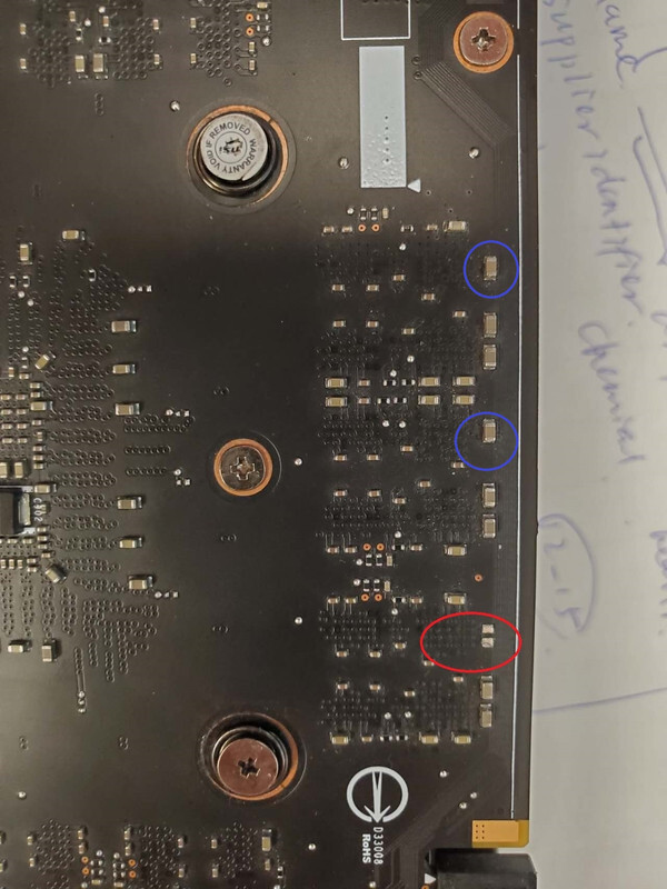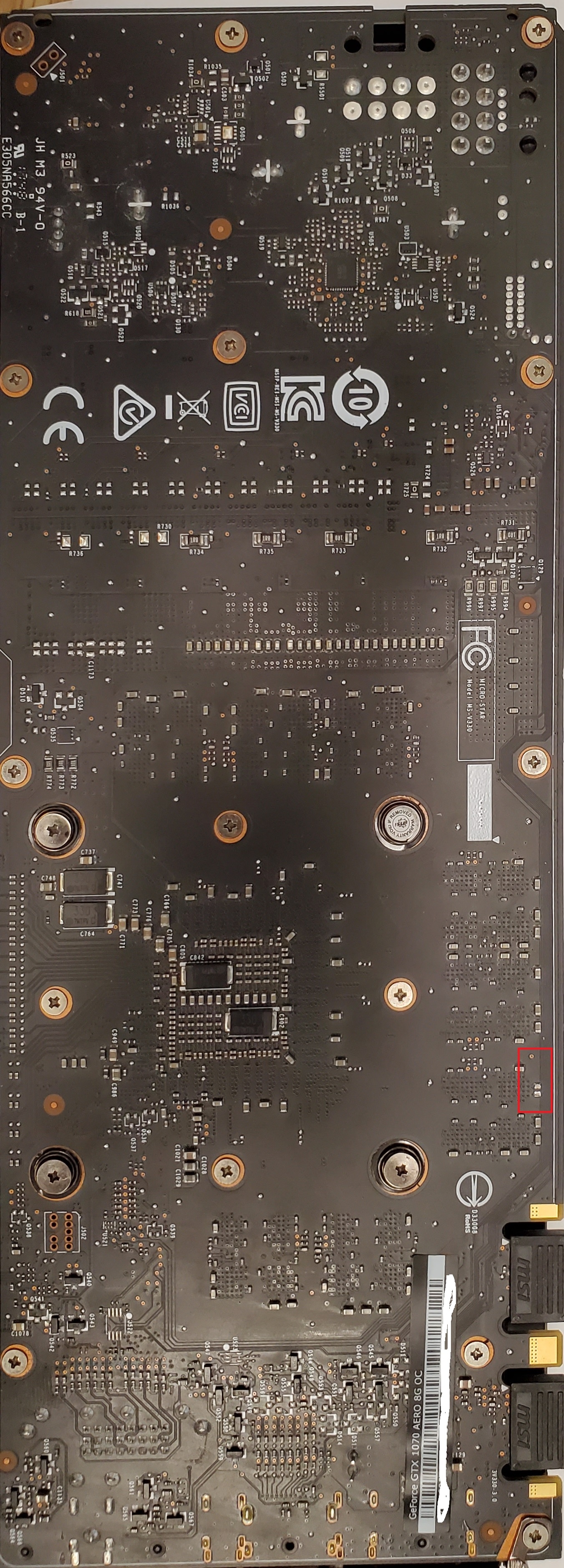 I need help with the identification of a very small component on my MSI 1070 8GB Aero. I don't know when it was chipped off but it now only shows a black screen for me. This component was highlighted by a red-colored square.