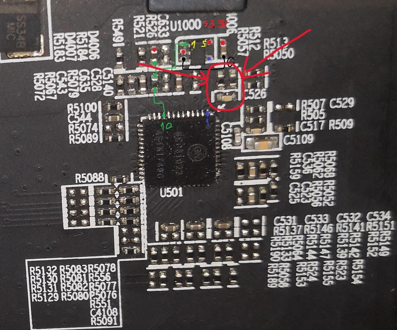RX 580 Sapphire Nitro+ resistor and capacitor on ncp81022 pin 51 & 52 (vss & vdd)
