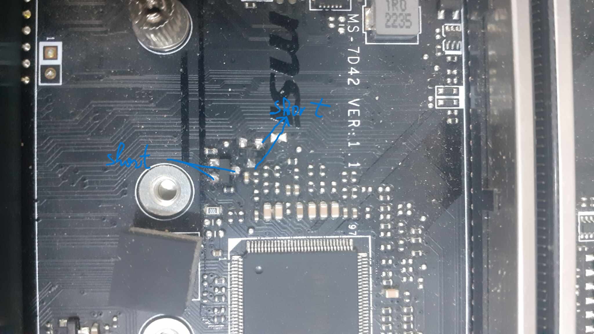 i found 2 shorted transistor near to KBC but i doubt if that normal short or not (connected to AGND AND AMDSIC)