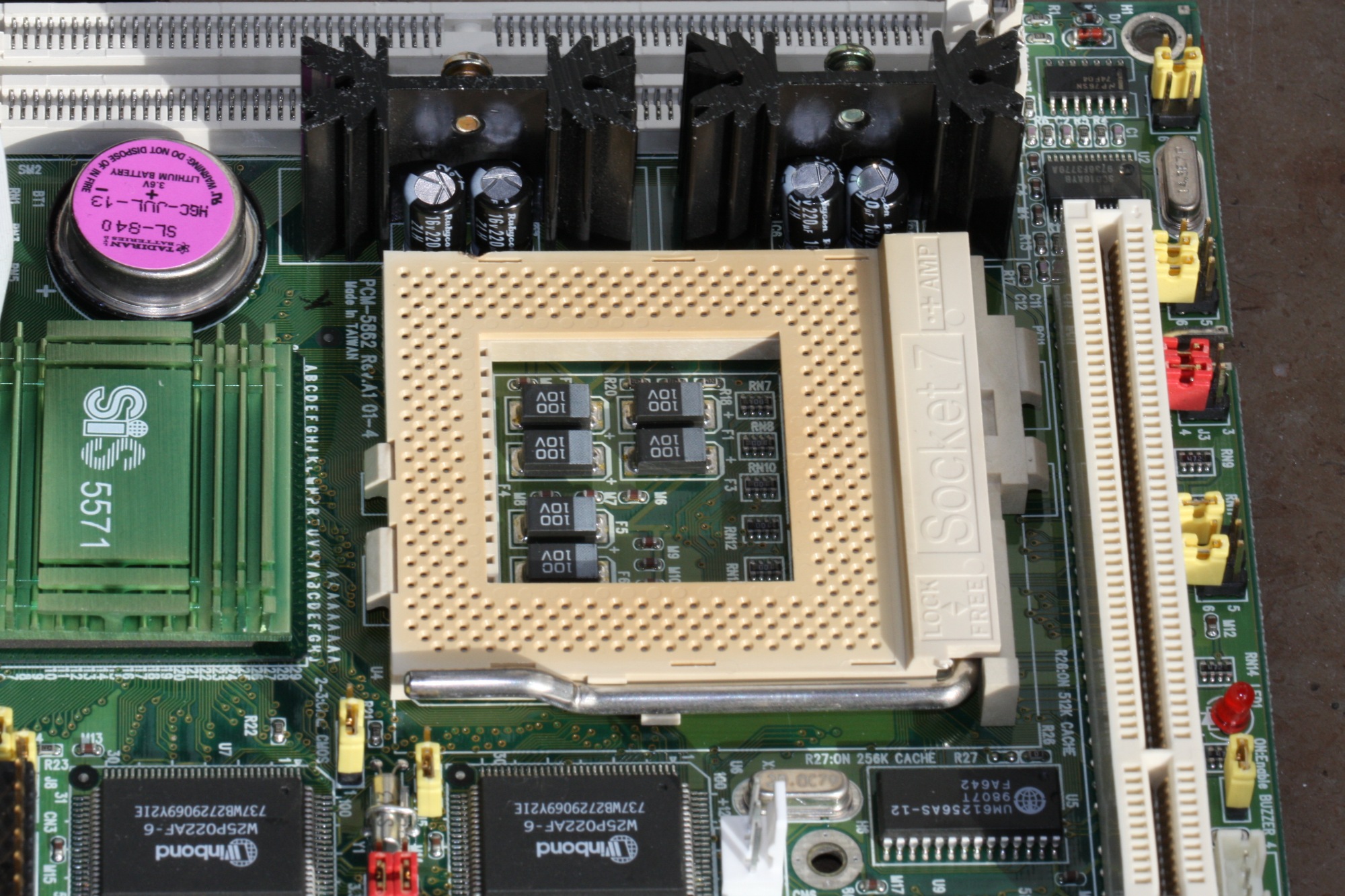 There is also a new lithium battery soldered in, top left right above the fantastic SIS 5571 chipset.