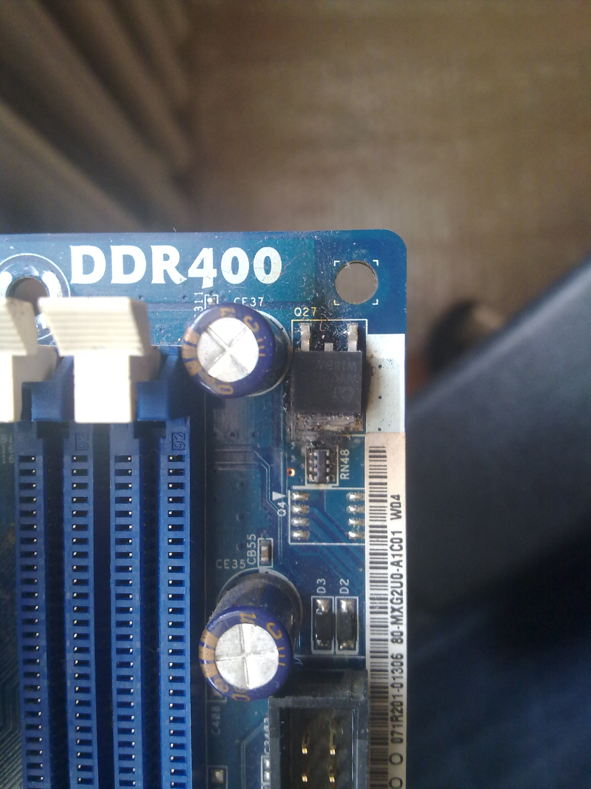 Got this MB dirt cheap, it has a burnt n-channel mosfet APM2030N.