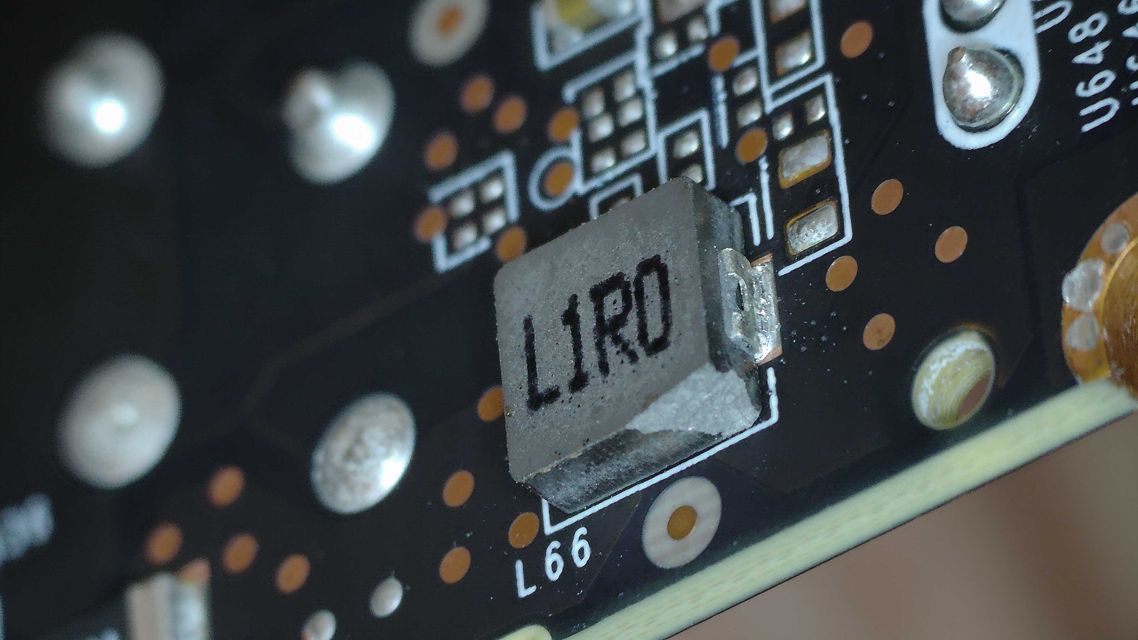 Upon visual inspection, I noticed an inductor with a small crack (see photos), but I'm not sure if it could be the cause of the issue. Do you think I should replace it? Does anyone have more information on this component?