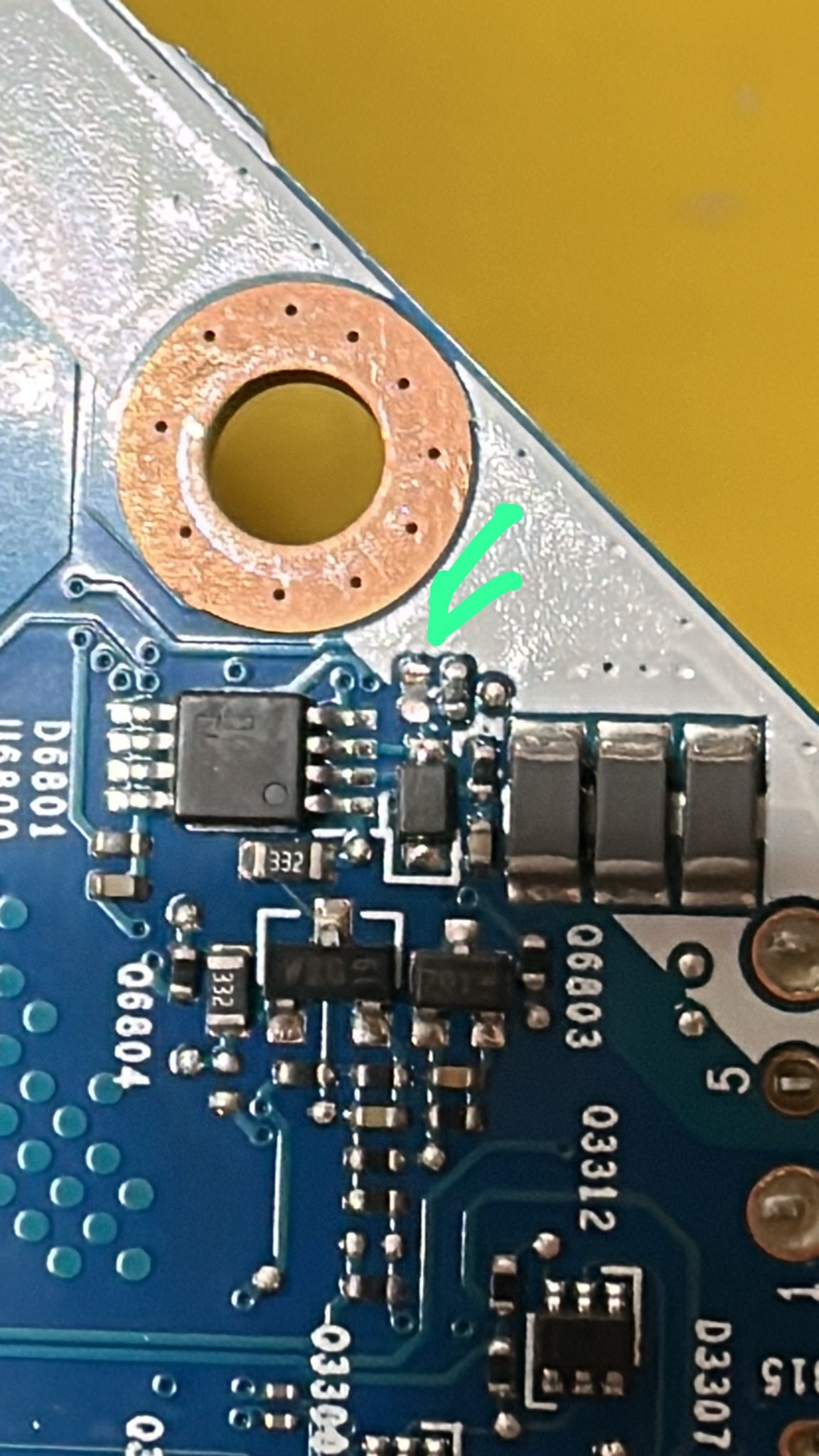 I inspected the motherboard and discovered a missing component on the back of the motherboard.
