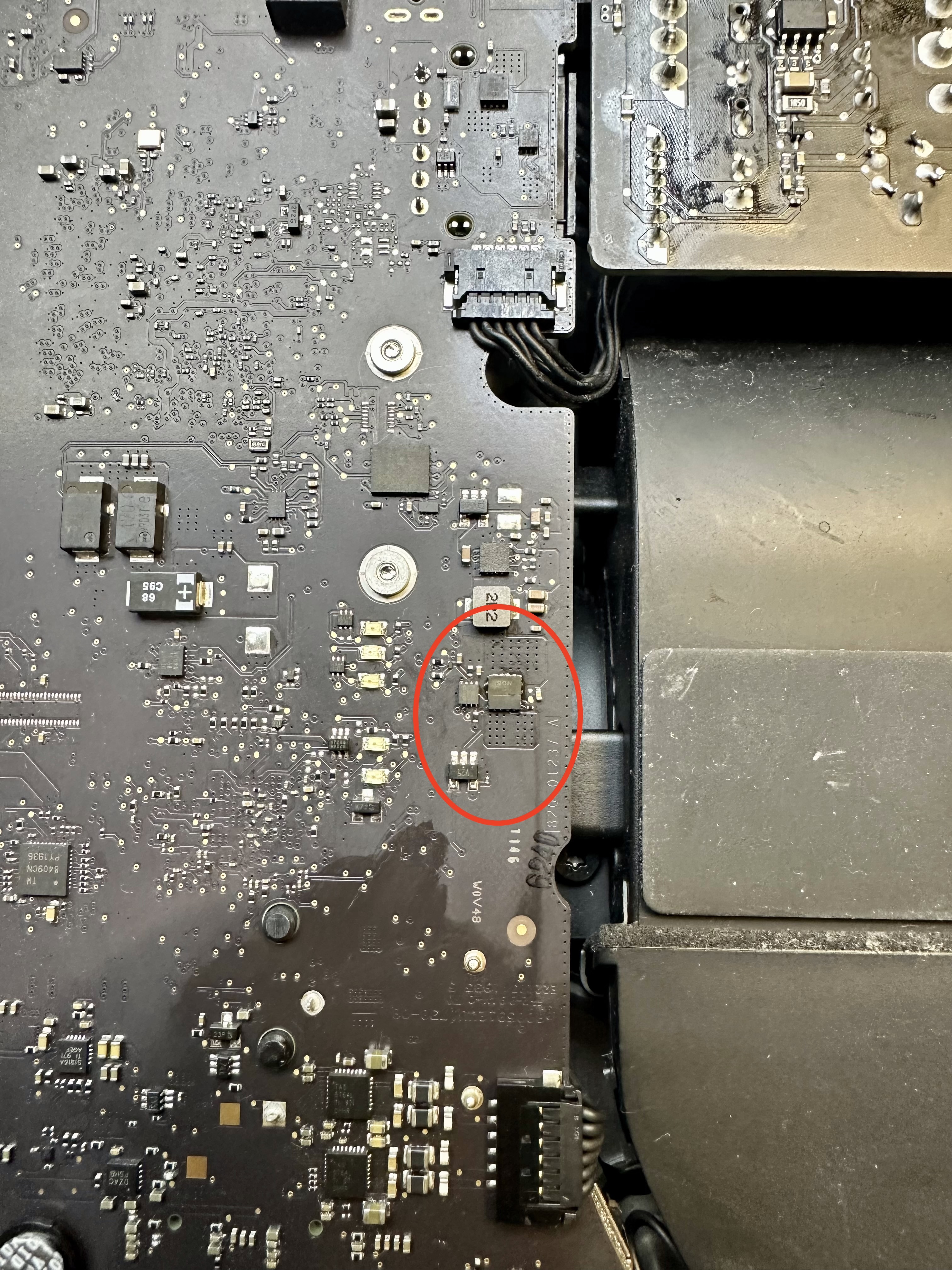 When I removed the screen from the iMac to check the status of the LEDs, I noticed that none of them were lit. I had a perfectly compatible and working power supply, so I tried it right away, but the problem remained the same (no LEDs). With the thermal camera, I noticed only a slight warming (32 degrees) of the NCP1605BG chip on the power supply. The rest was completely... -