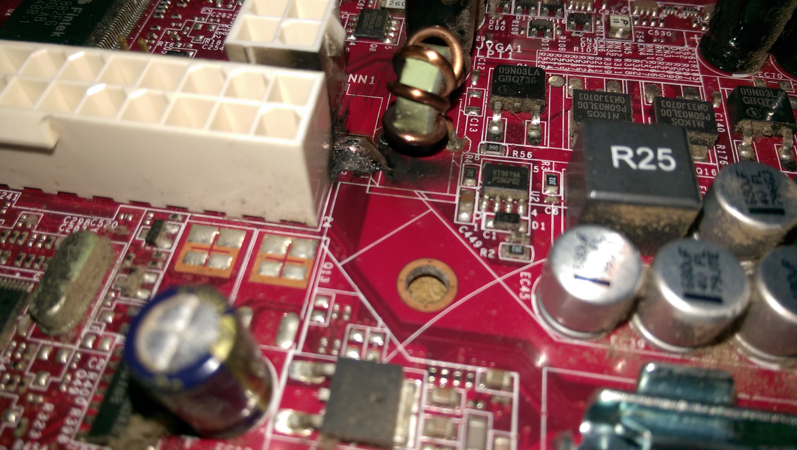 I've never seen that before. Was the PSU that was powering it bad? Is that a bulged Teapo at the top corner of the board?