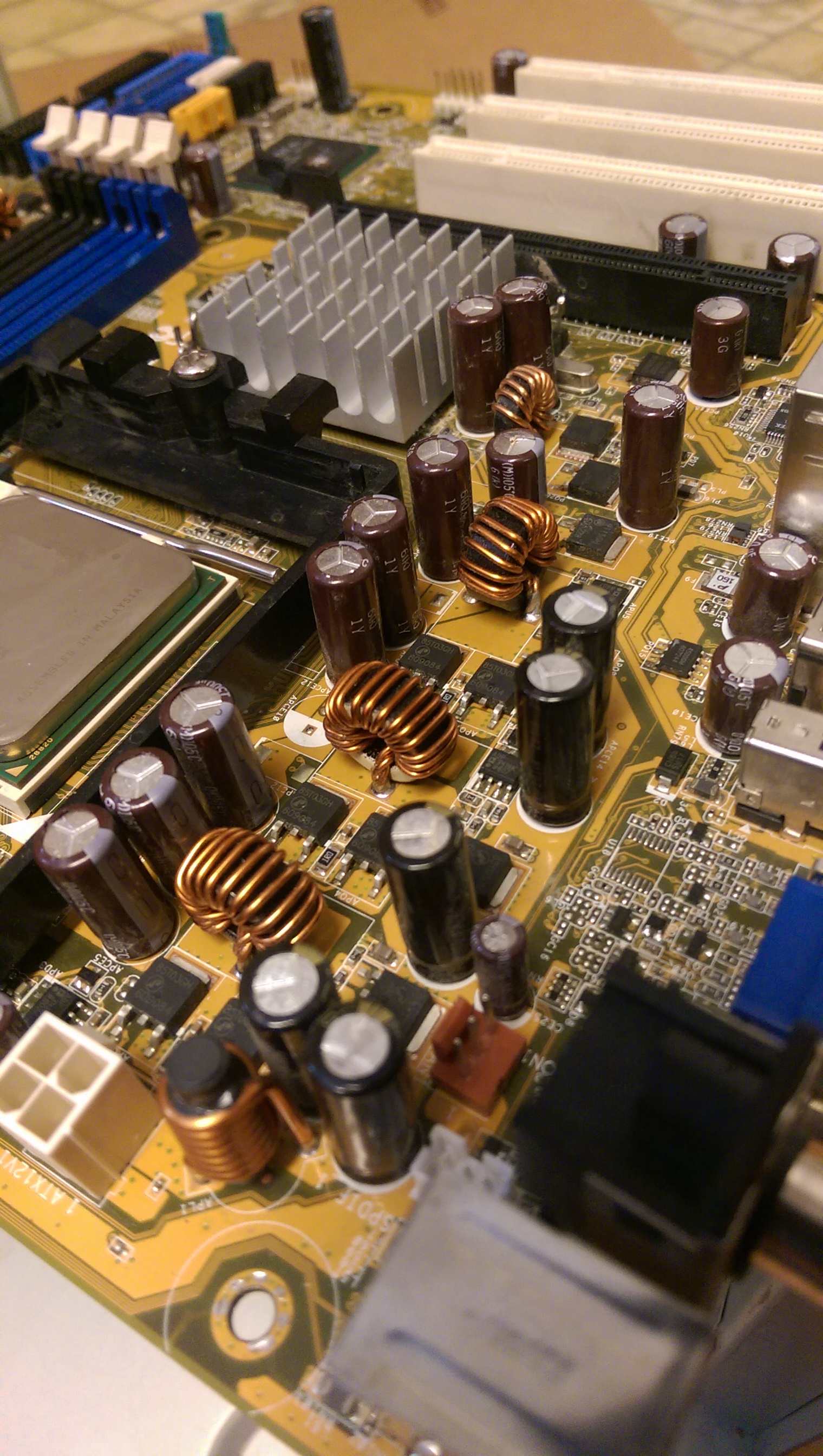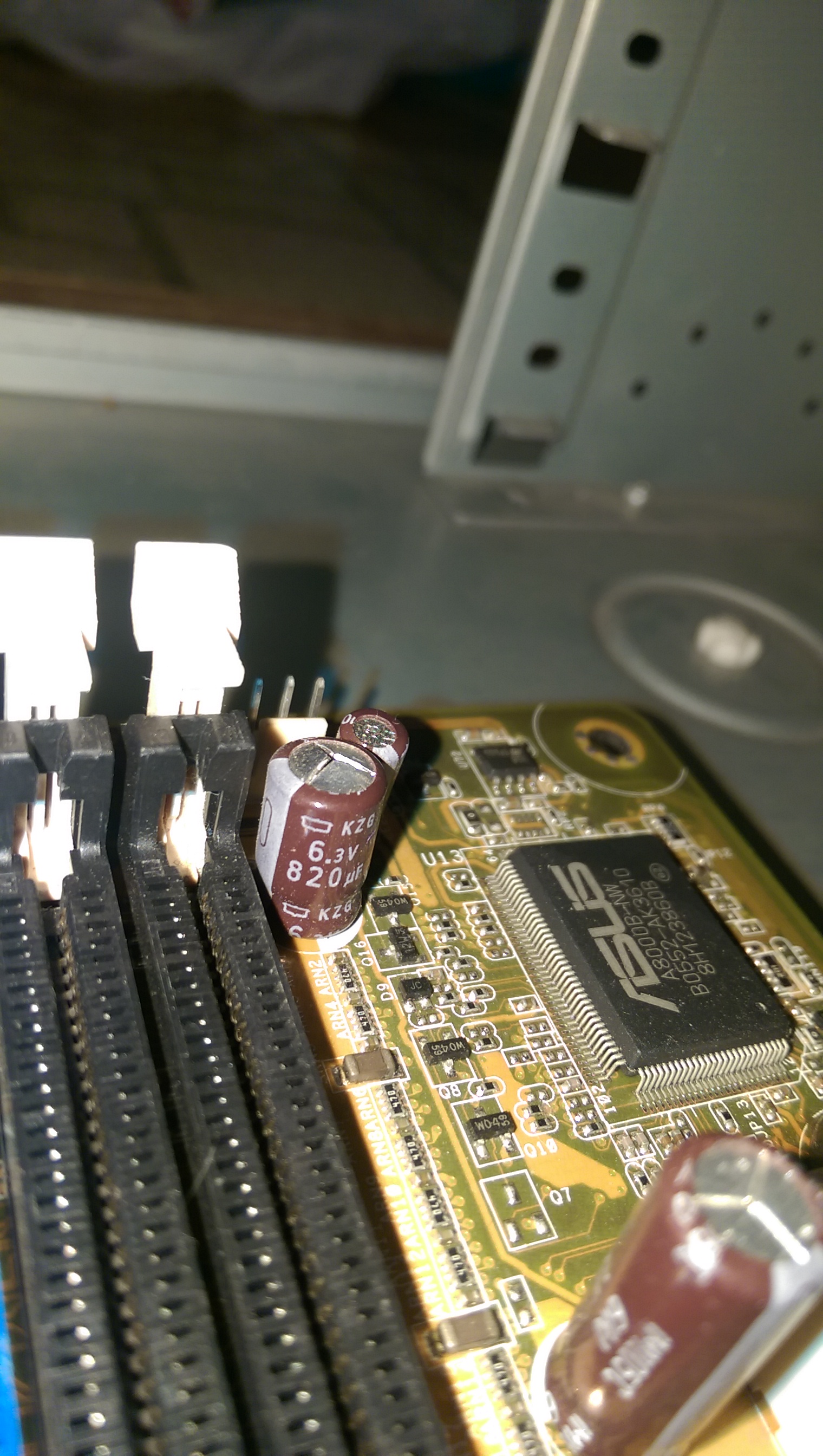 Now several 6.3V 820uF have burst or bulged & it won't POST, so I'm going to recap all 25 remaining KZGs, which I've read on Badcaps have high failure rates, maybe especially in high heat applications (a tight desktop case in a dusty shop, yep it's warm, even with a slot fan)...any remaining large caps are Panasonic.
