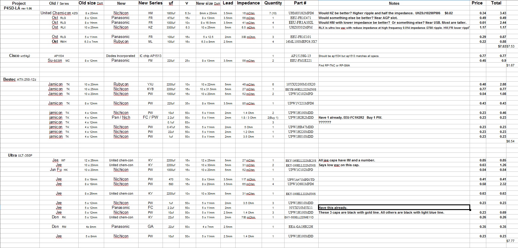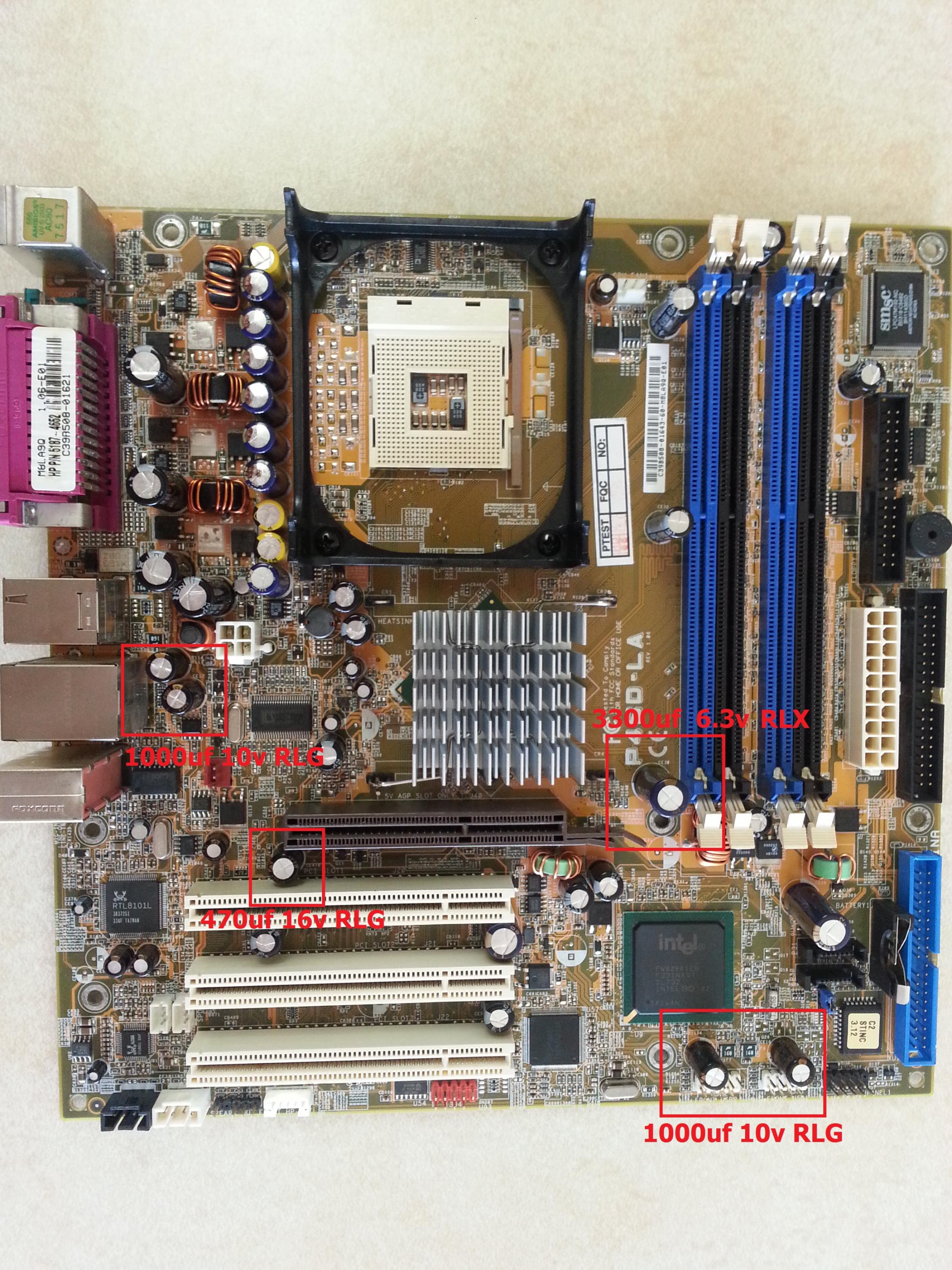 Hey guys I was hoping you could help me out. My old motherboard has some blown caps and I wanted to freshen it up. I don't know what new caps to get or if others should be replaced that aren't blown and no esr meter to test with.