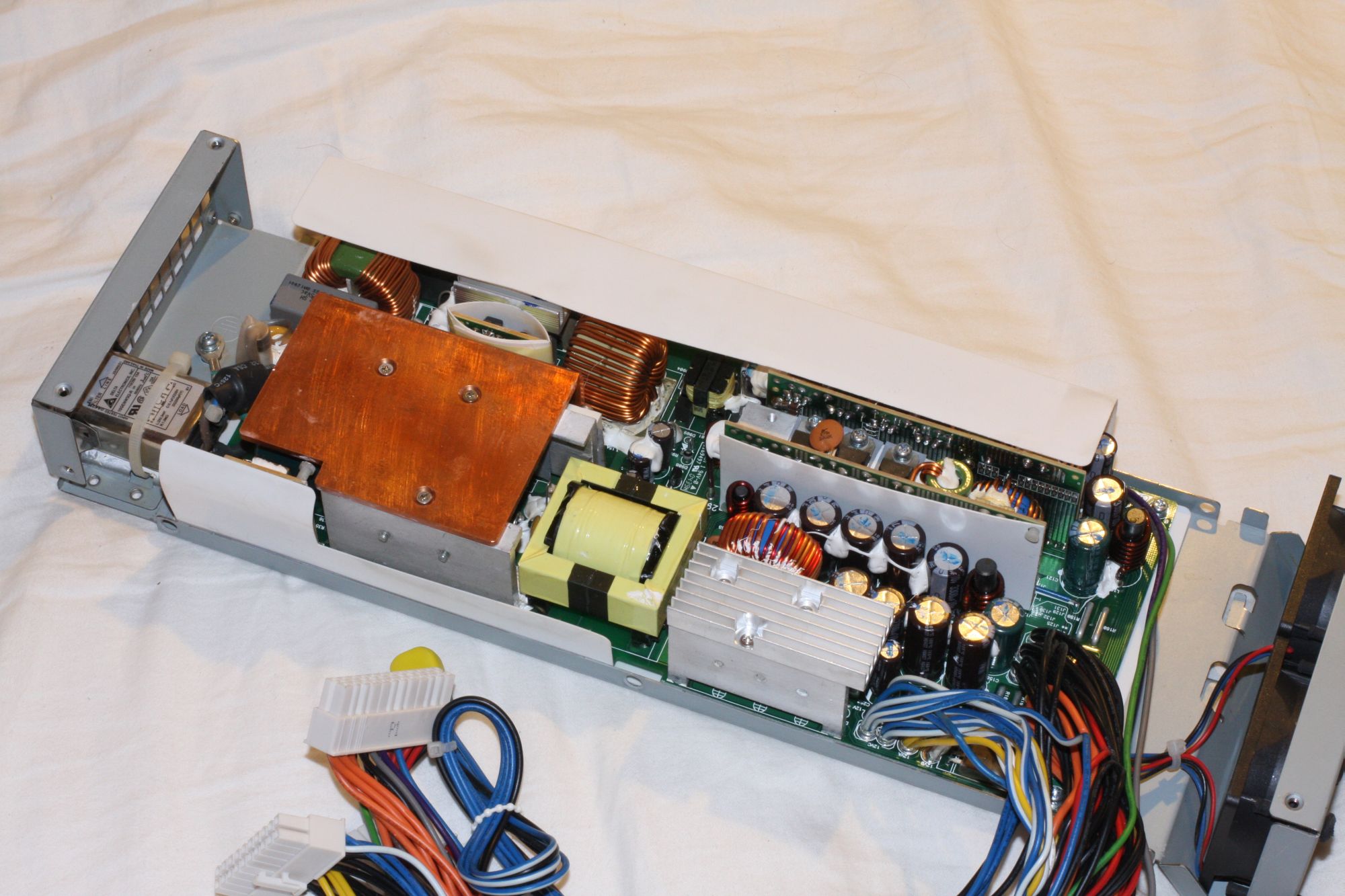 The PSU looks very nice, good caps and very overdesigned (it's rated 550W) Model is D550P-00 P/N DPS-550DB A DELL P/N D1257