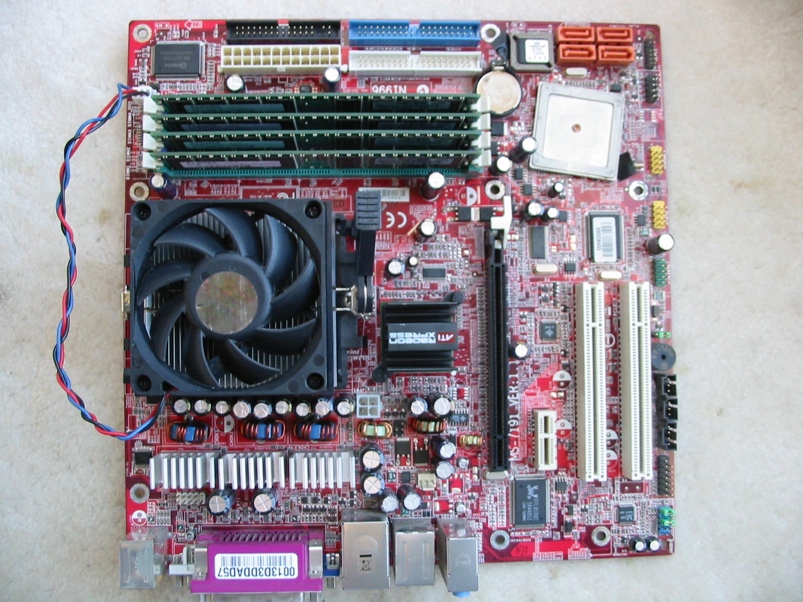 It came with an Athlon 64 3000+ CPU and a stock heatsink. I upgraded the CPU to a 3500+ sometime in late 2015 or early 2016 or so. And finally this last February or March (2017), I upgraded the CPU again to an FX-57 (the fastest socket 939 single core CPU