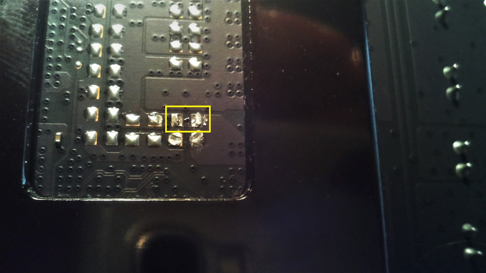 searching the web I couldn't find high definition pictures or schematics or boardview, but i think it's a capacitor that's missing on those yellow highlighted pads in the picture.