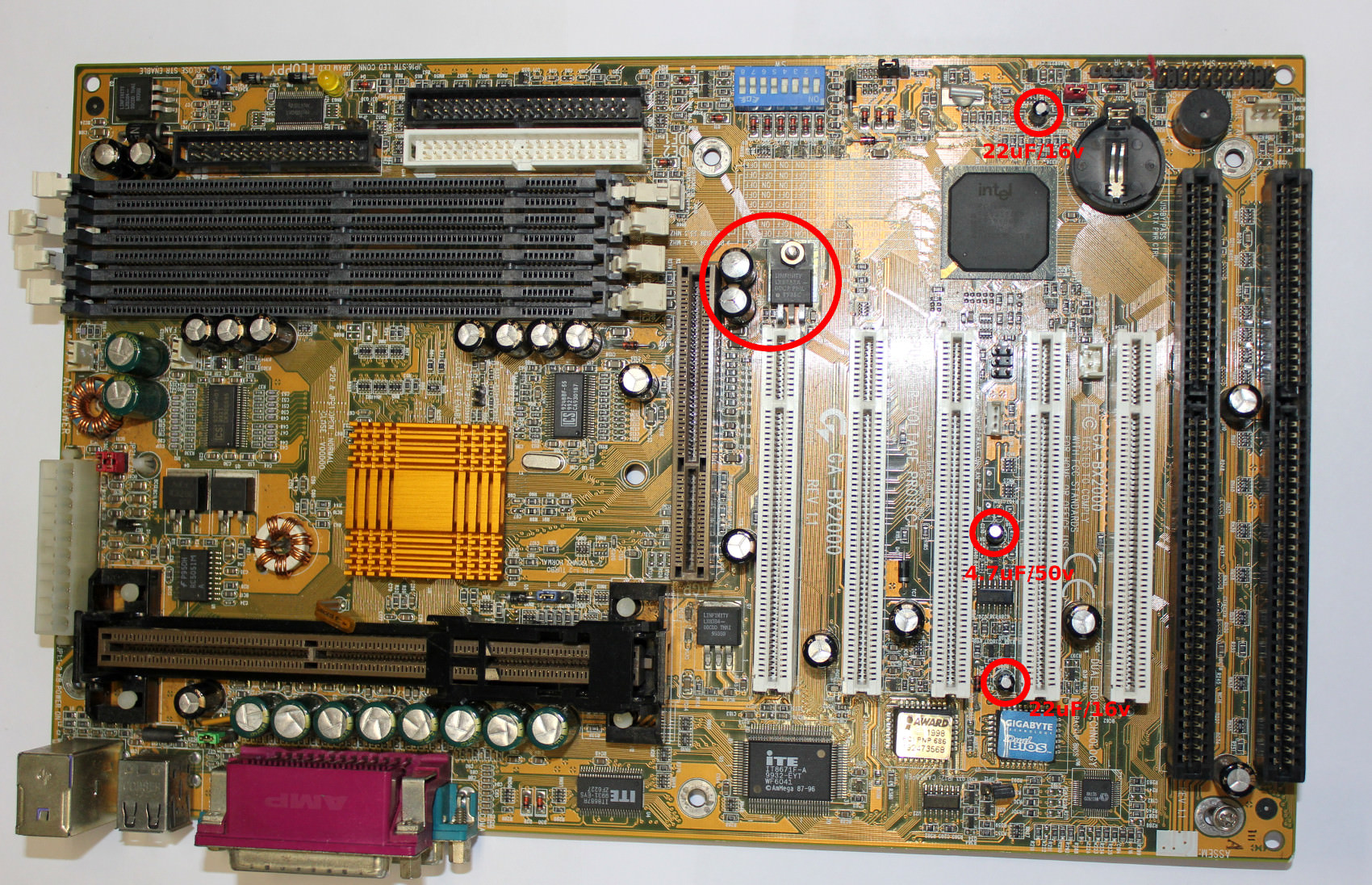 Since I enjoy learning about electronics and repairing things, I decided to recap it. Got a 60W soldering iron and a few other things and I took note of the position and values of the capacitors on the motherboard: