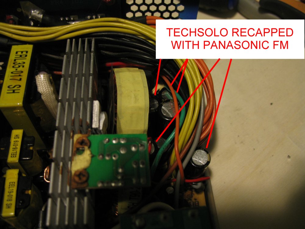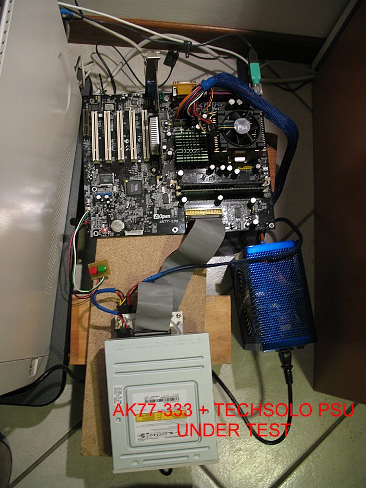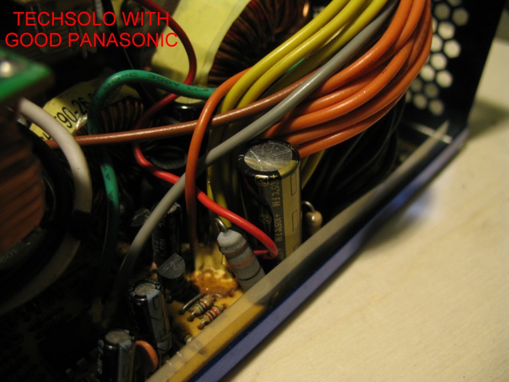 In one picture you can see the MOBO and PSU under test. Few pics of Techsolo after recap too.