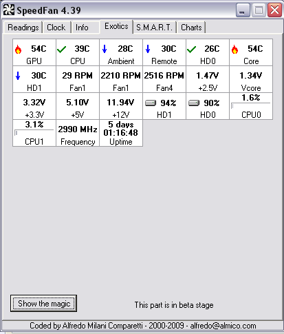 The only issue is that the CPU core power is around 1.35v, which only bothers me because the Intel Active Monitor does not show it right in the middle of the gauge.