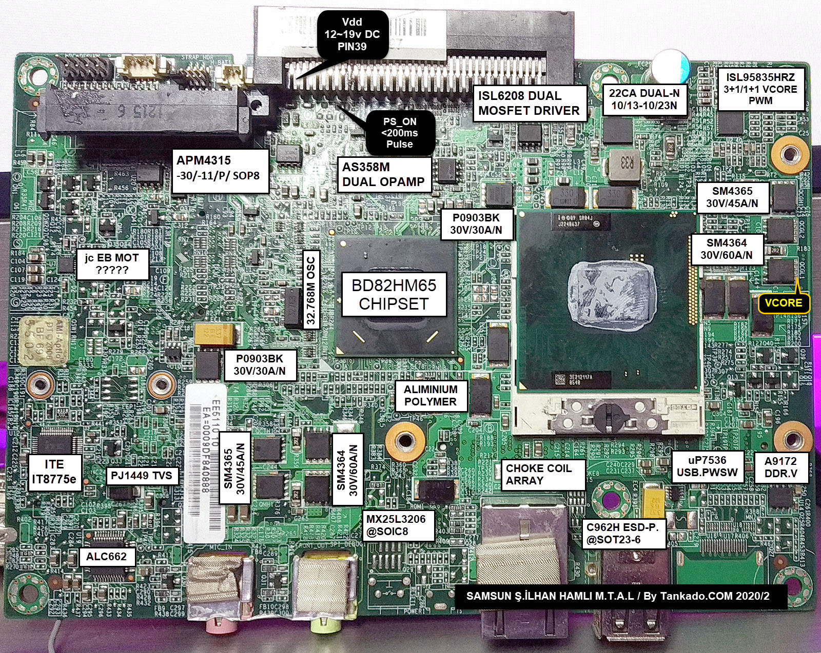 There are two of this card. One works well, and I measure it to fix the faulty one, and the other. The problem is as follows; The card turns off when the current reaches 1.2 A, installing and starting the processor on the card. I get all the voltages without a processor installed. VCore 1.05, GCore 1.1 and other voltages of 5 V, 1.8 V and 3.3 V are available. There is no faulty mosfet, no heated voltage regulator. I removed all the tantalum and aluminum capacitors from the work card and attached it to the faulty card. Nothing has changed. When I insert the CPU, the PGOOD ISL95870 output drops to 0, then the VON ISL95835 signal drops to 0 and interrupts the strobe signals 95835 and 95870. The processor is not faulty because it is running on a different board. Also, I programmed BIOS many times with the same firmware model. I even copied it from work cards. The NTC and GNTC (gcore) resistors of the solid card and the faulty card are the same. There is no short circuit on the board smd capacitor, I checked them all. When the board rises above 1.2 A, it fails for 1-2 seconds and turns off the VCORE voltage. GCore remains available. Durable card pulls up to 3A at 12v. However, this card for some reason shuts off energy when it rises above 1.2A. I don’t know what to do. Since I don’t have an oscilloscope in which it is stored, I cannot observe the change until the energy is turned off. As a last resort, I will try to transfer all smd Vcore capacitors from a solid board to a failed board, although there is no short circuit capacitor. But before I try, I still want to know your opinion. Perhaps there is a simple malfunction, but I could not do this and tried to fix this card for several days. By the way, this card is an OPS (Open Pluggable Standard) card, it is not mainly different from a laptop, and it is an Intel i3 system based on HM65.