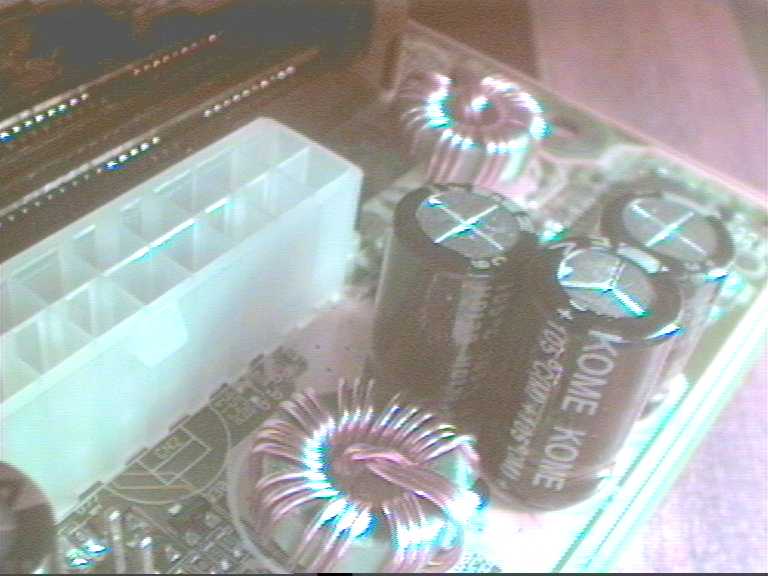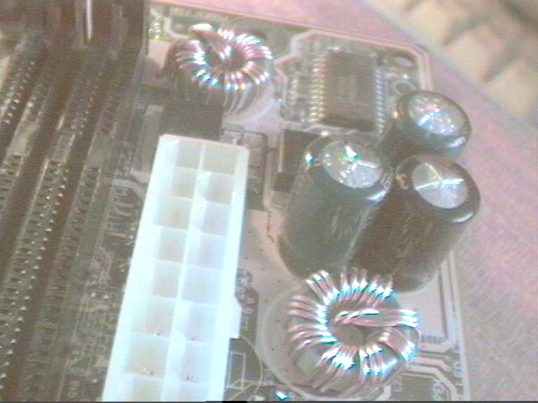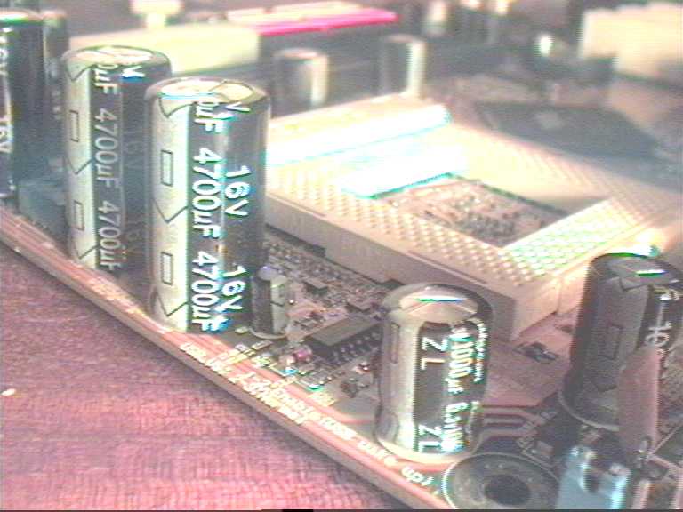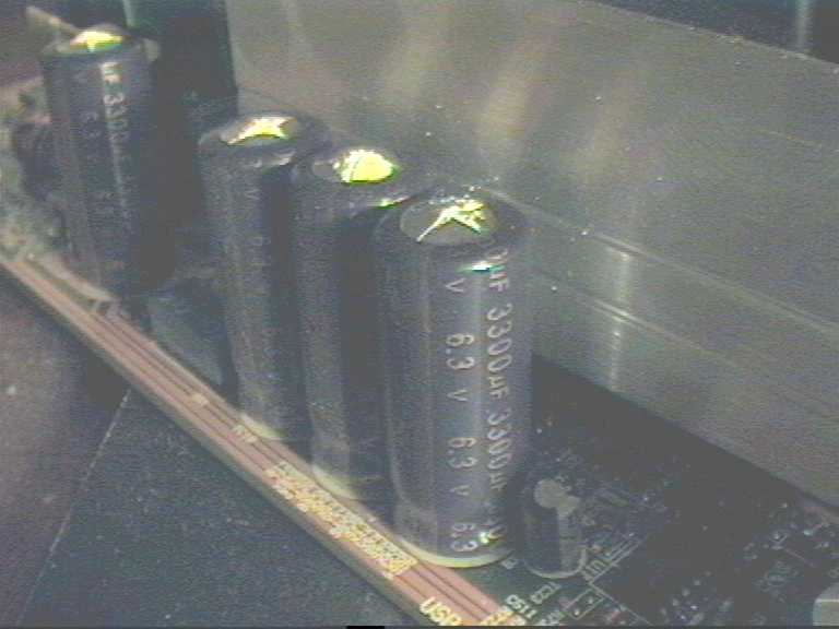 This GA-6VEM has 4 bulging 3300uF/6.3V GSC. Other caps are 6 Rubycons 1000uF/6.3V, 2 GSCs 330uF/25V and 2 CHOYOs 1200uF/6.3V.