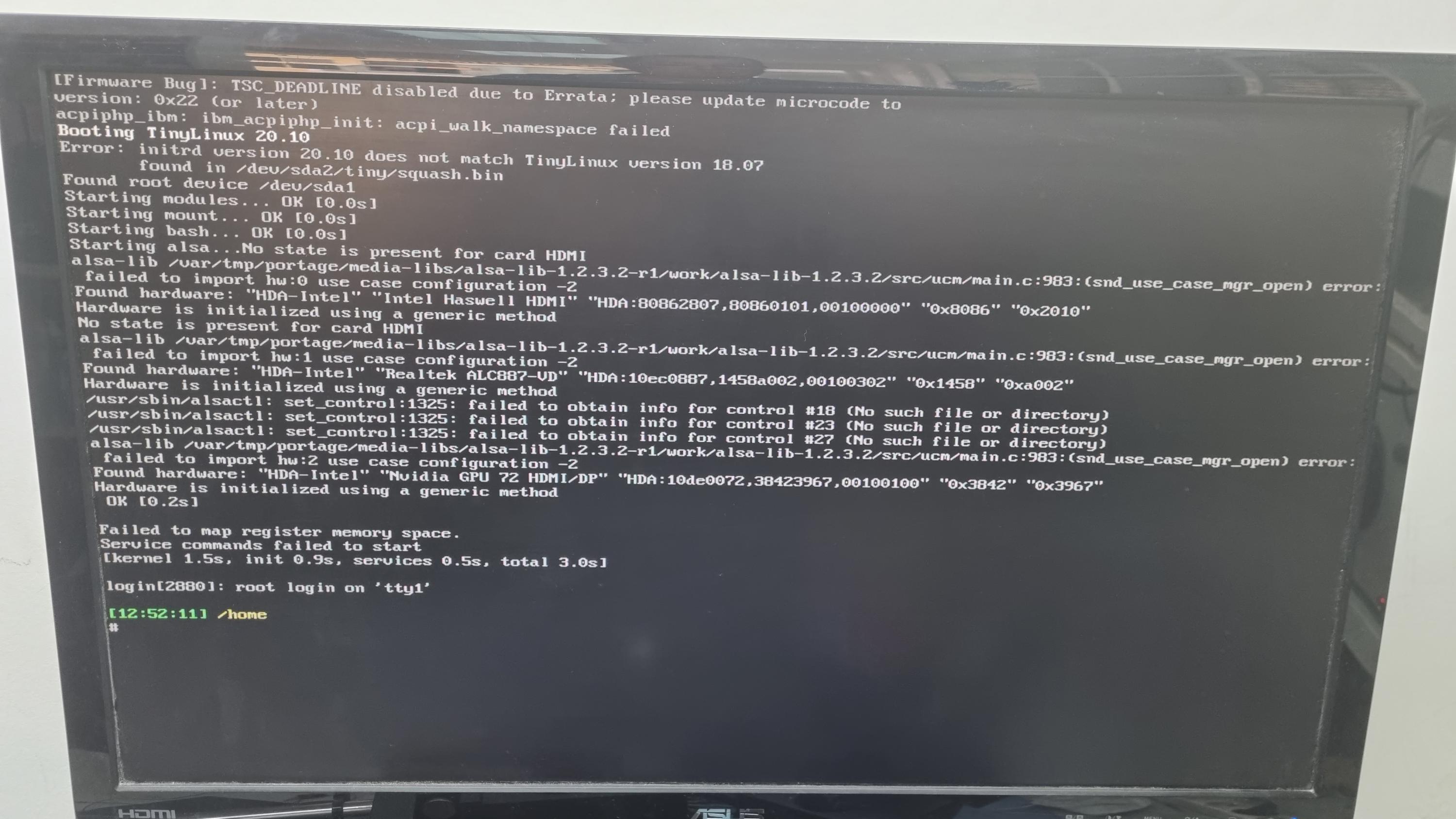 Error: initrd version 20.10 does not match TinyLinux version 18.07