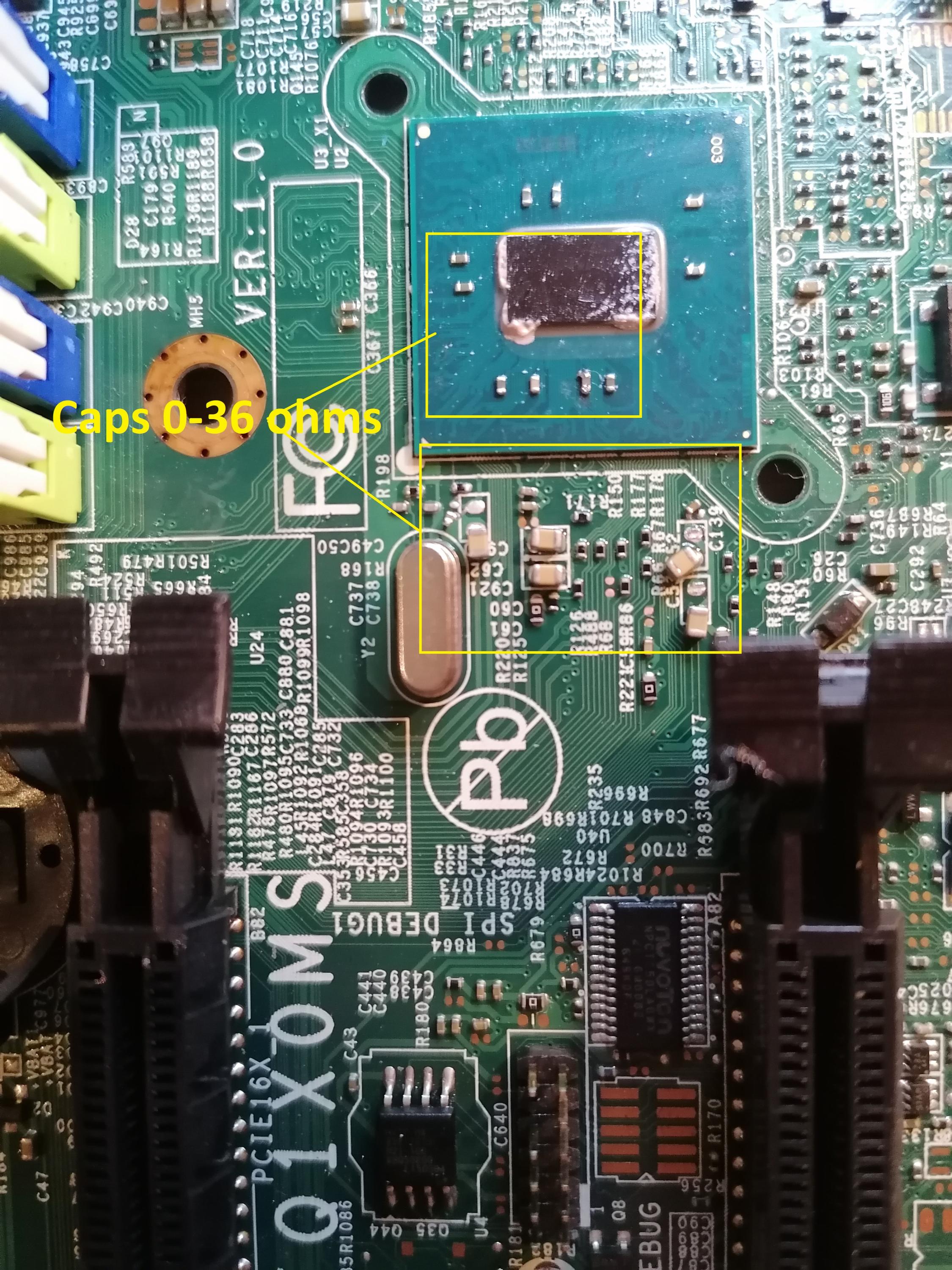 Then I check the caps around the chipset and the resistance is about 35 ohm.