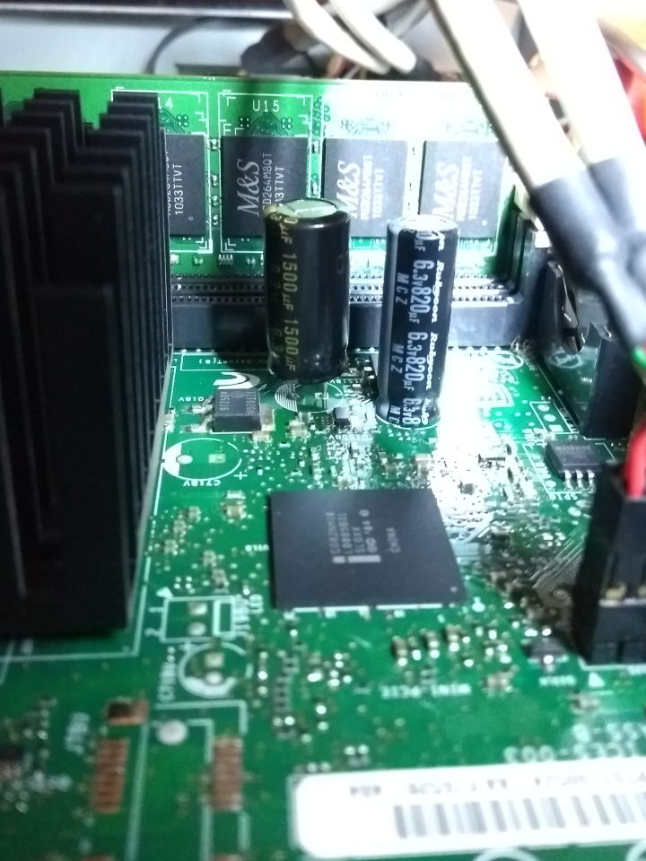 There are Rubycons, Nichicons, some cheap looking caps I can't identify in the audio circuit, two Vcore caps I also can't identify - and a single KZG, the KZG is the only one that popped.