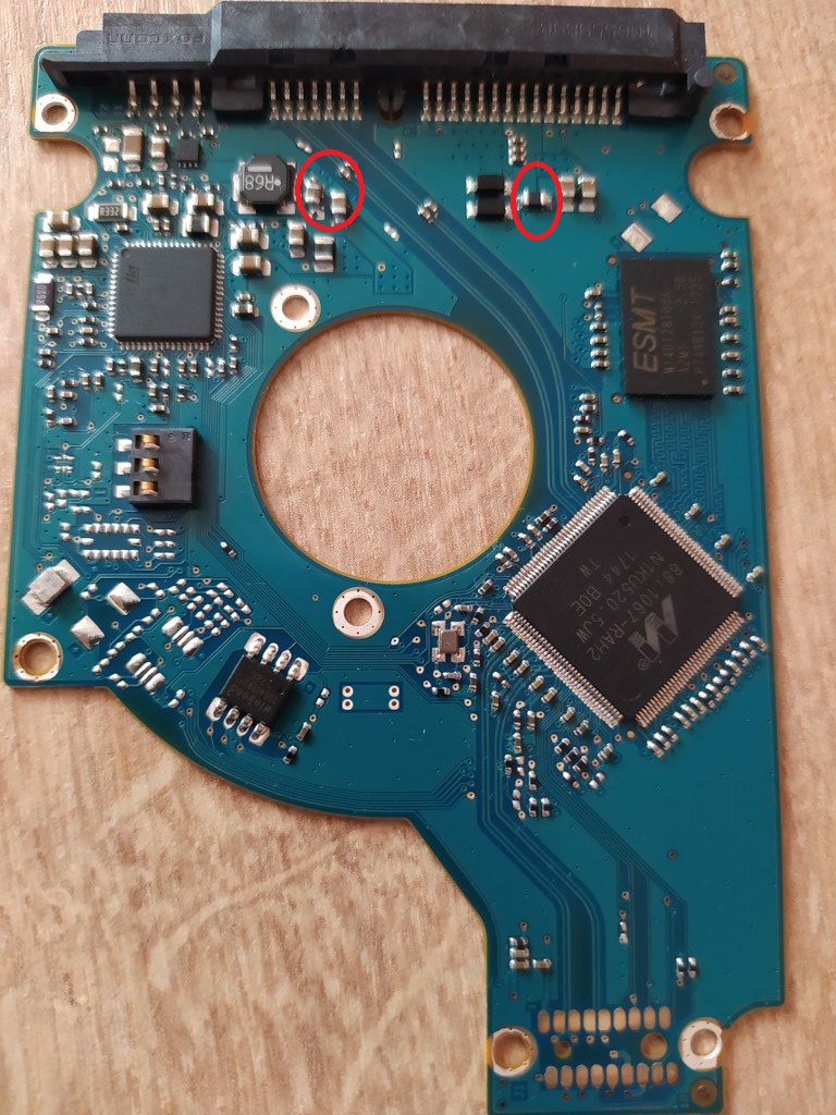 I removed the hdd's motherboard,test the capacitors,resistors etc.