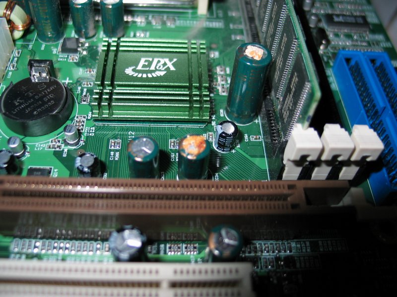 I've opened case on a server at work - just to see what crappy (noisy) CPU cooler is there. And found bad caps on the board instead (Epox EP-3PTA)...